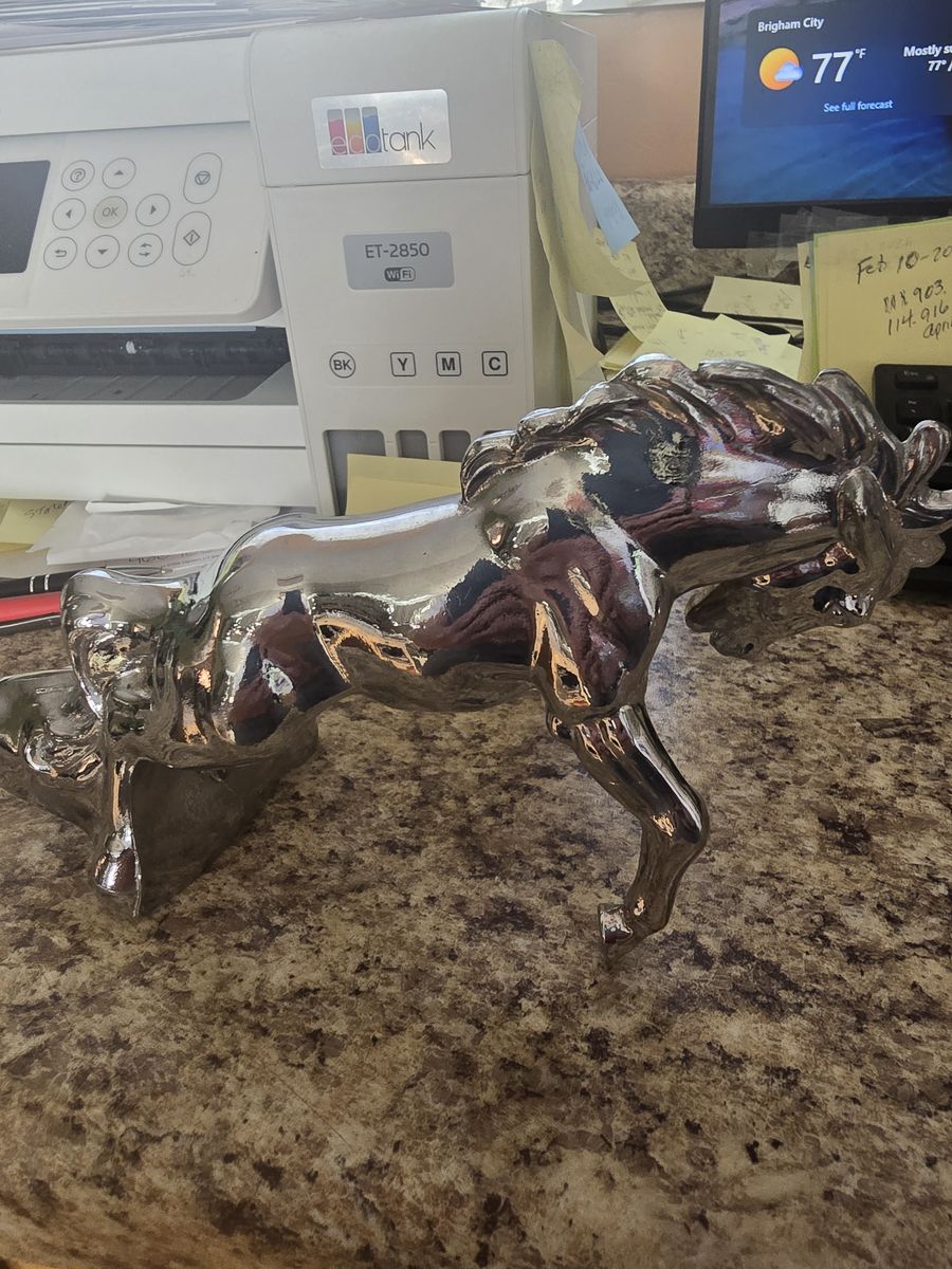 older chrome fighting stallion hood ornament 8 inches long