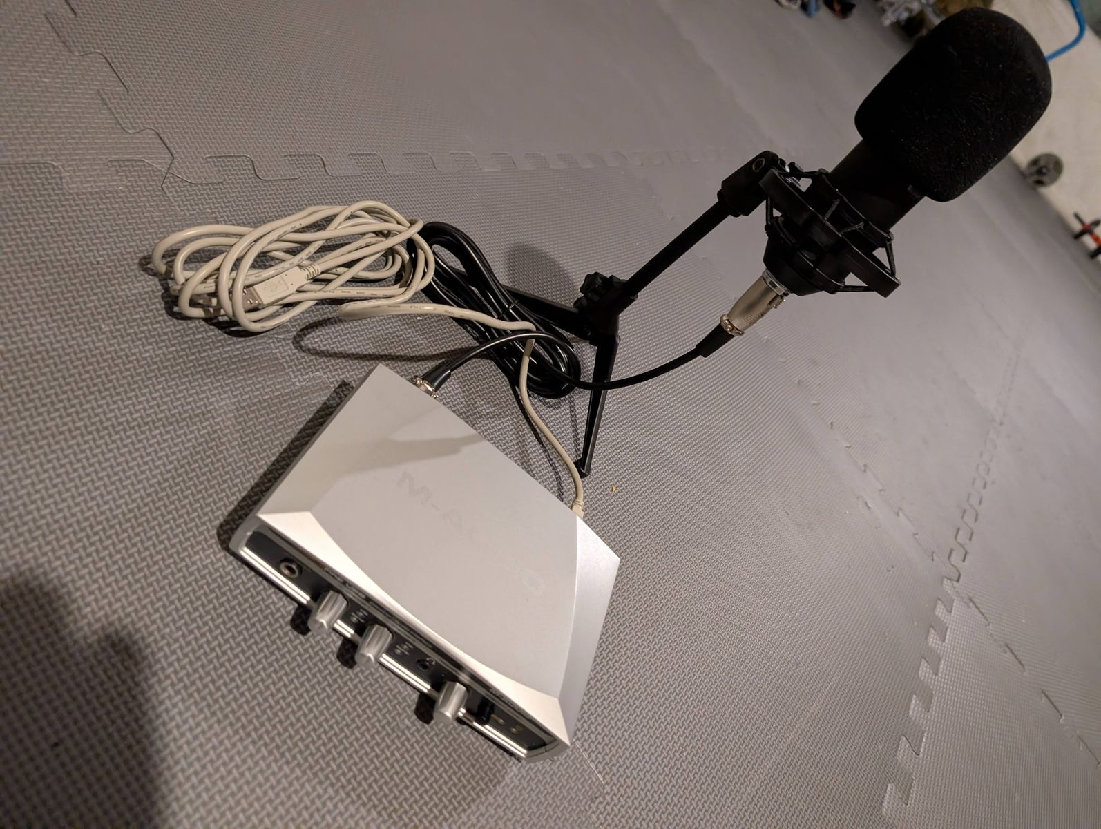 GooglePayI have a bunch of different recording setups I've put together from equipment I no longer use that all still work great! You have your choice between any of the interfaces in these pics and one or two microphones! All of these interfaces work great for recording vocals, streaming, podcasting, or just about anything you could think of and include instrument inputs as well so you can plug in a guitar and replace your guitar amp/pedals with VSTs in a daw like audacity, reaper, ableton, etc! Included microphone is a CAD GXL1800 powered condenser mic that sounds great with just about anything you throw at it. (I also have similar spec'd XLR condenser mics from Zingyou and Maono). Feel free to ask for sound samples!