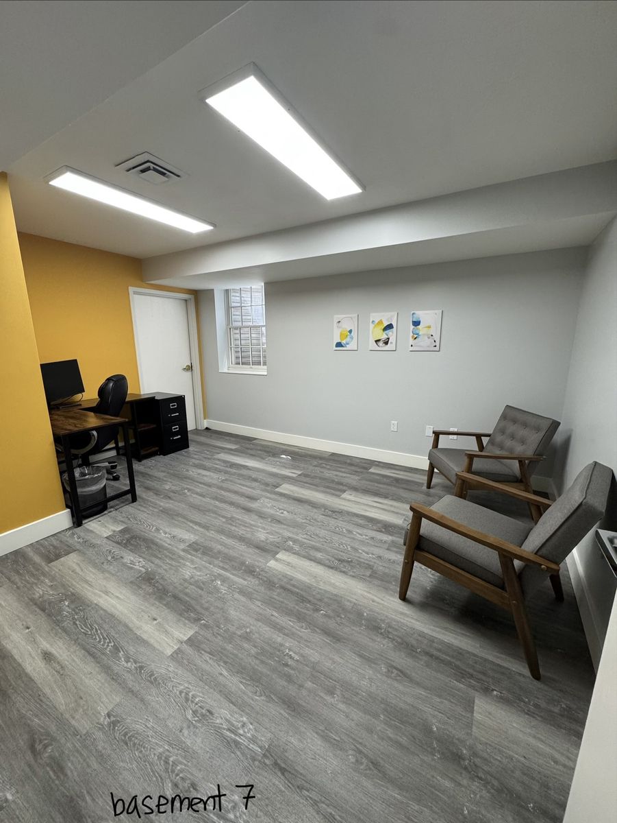 ZelleBasement offices available for rent, has a window. Access to break room on main floor and lobby area on main floor. Other tenants are therapists and working professionals. $600 per office per month. One year contract. All utitlies and internet inlcuded.
