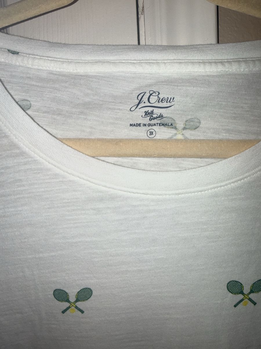 VenmoThis is a women’s size 3X . Brand is J.Crew women's vintage cotton crewneck T-shirt featuring a tennis racket graphic pattern. It is in like new condition. Cash or Venmo.