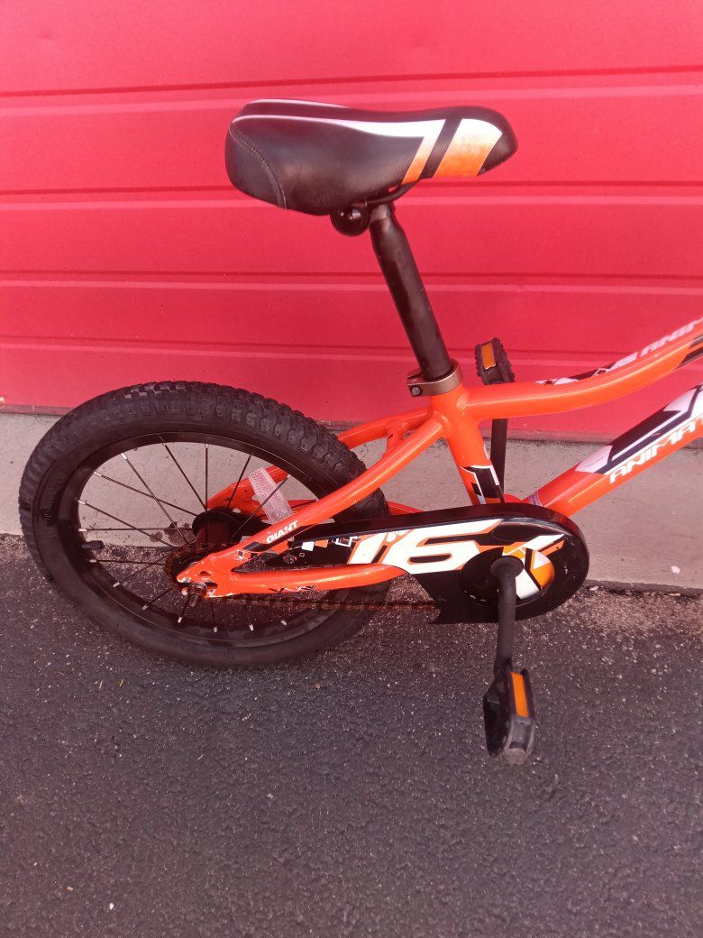 Giant Animator Smaller child's (16 inch wheels) bicycle. This is a good quality bike has not been Ridden very much at all look at how good the tire tread is on it still. Has just a tiny bit of sun fading from sitting out back. It's been cleaned serviced and lubed and it's ready to ride! $75 obo!