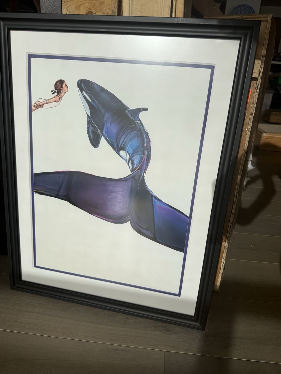 Black wood frame, white matting with complimentary bright color undermat. Dimensions: 22.25” x 28.5” approximately. One hangs vertically, the other two horizontally. Excellent condition! Check out Fisk online; she seems to be quite well known.
