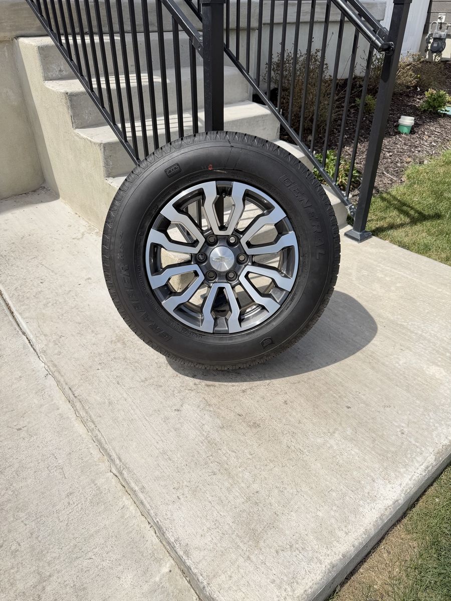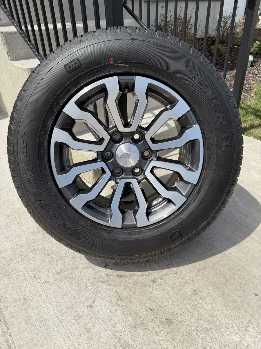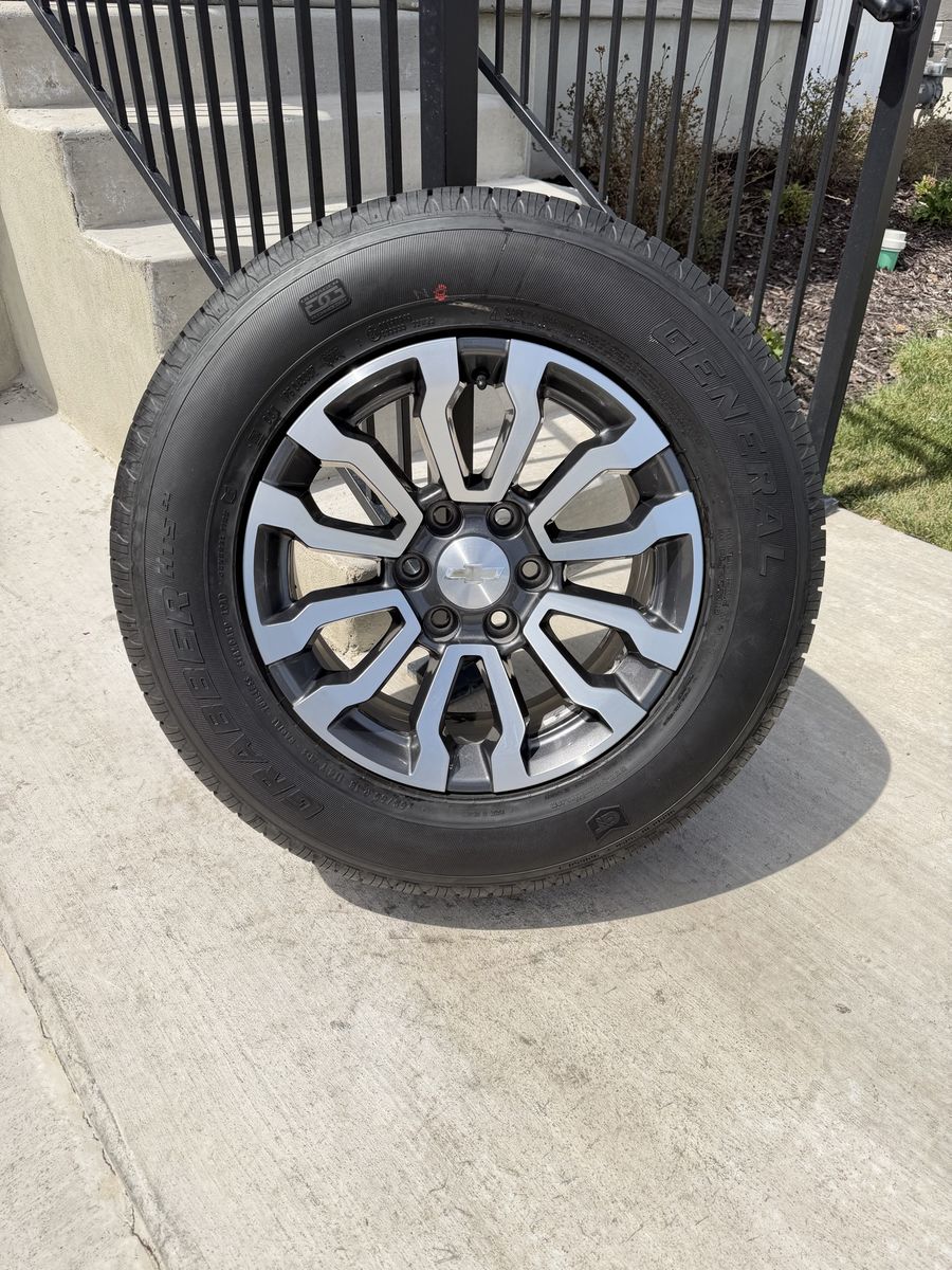 ApplePaySet of 4-Chevy Silverado 1500 Tahoe Suburban Rims and Tires 265/65R18 General Grabber Almost new ,asking $1500 obo Tires have only 20 miles Rims have only 1000 miles Bolth in excellent condition Comes with lug nuts and sensors Bolt pattern 6-5.5/6-139.7