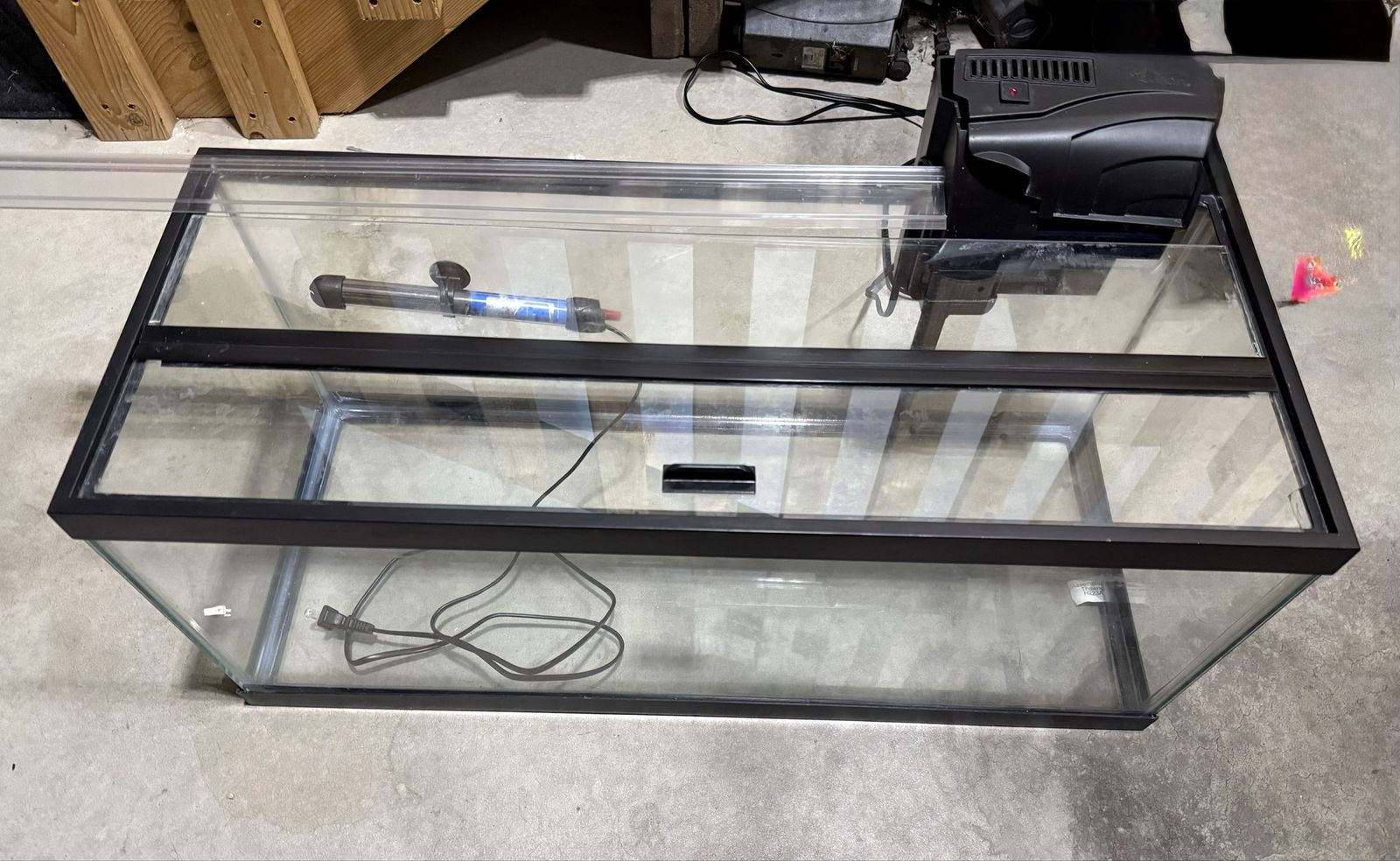 Venmo20 Gallon Long Fish Tank with 100 W heater, filter, and glass lid. Lid does have a small piece missing in the corner as pictured.