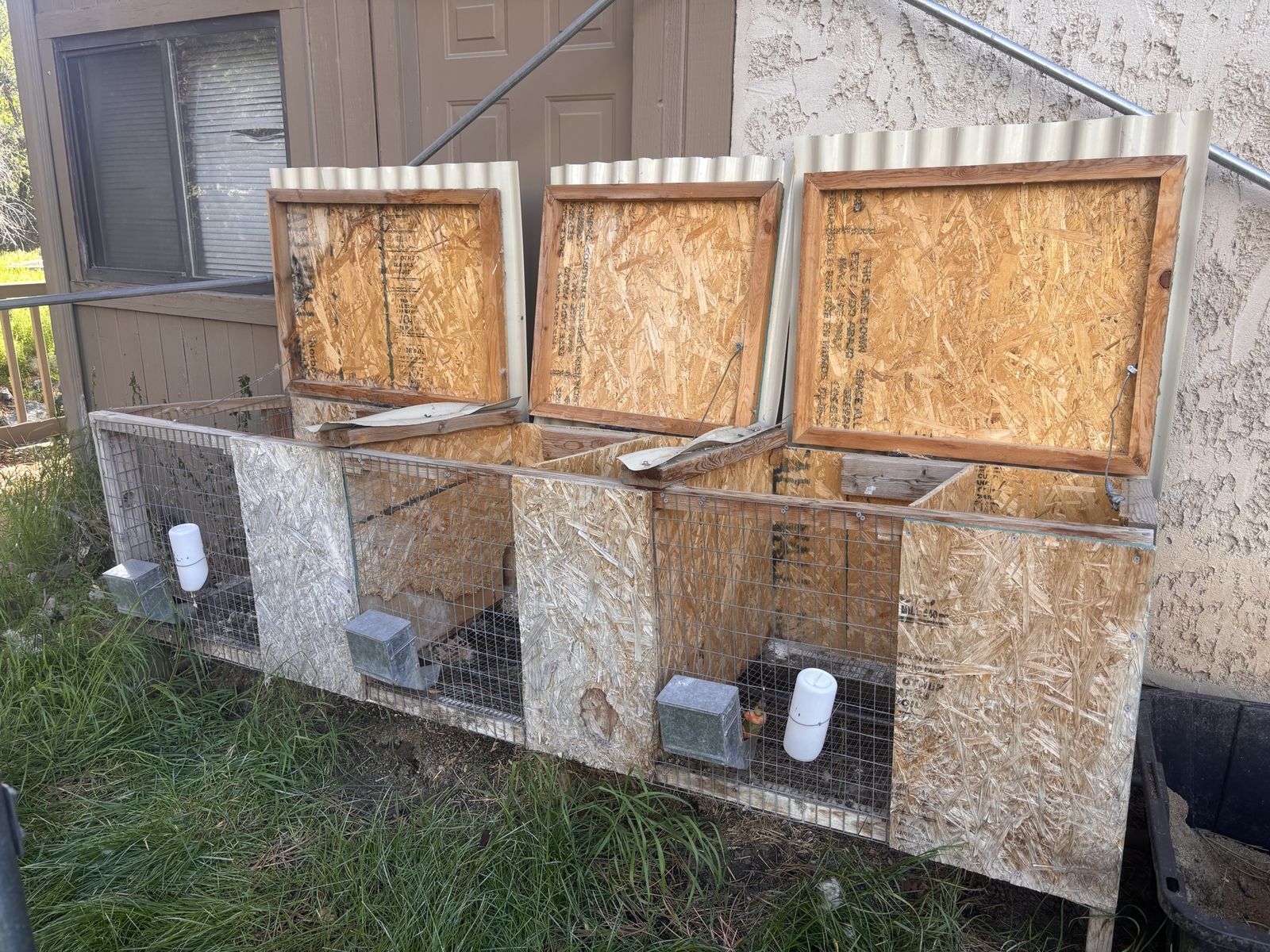 VenmoVery study outdoors rabbit hutch! It homes 3 rabbits, with an area in each house to hide and be perfectly warm. Feeders and water bottles included. Reach out for any questions!