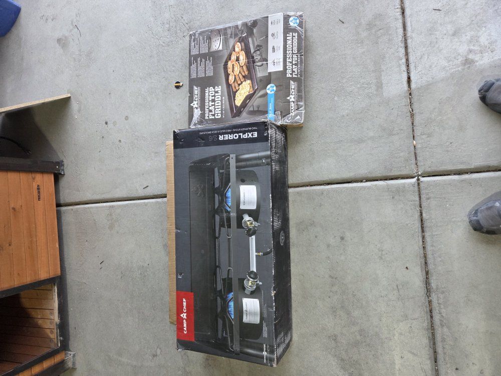 VenmoBought last year. Barely used still works great. 2 of the tightening screws for the legs broke off but still works just fine. Asking $100 for the stove, $40 for the griddle. Thanks for looking!