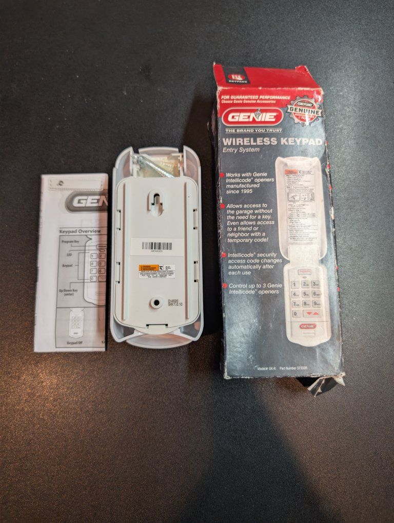 INCLUDES Genie GK-R Wireless Keypad Mounting Screws (Sealed) User Manual / Programming Guide Original Retail Box