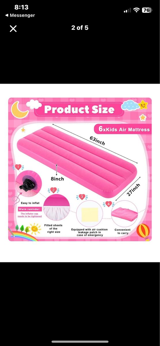 ApplePayBrand new! Retails for $129! Windyun Kids Air Mattress Bulk with White Fitted Sheet,Toddler Inflatable Bed 63 x 27 x 8 Inches Blow up Airbed Camping Sleeping Pad for Kids