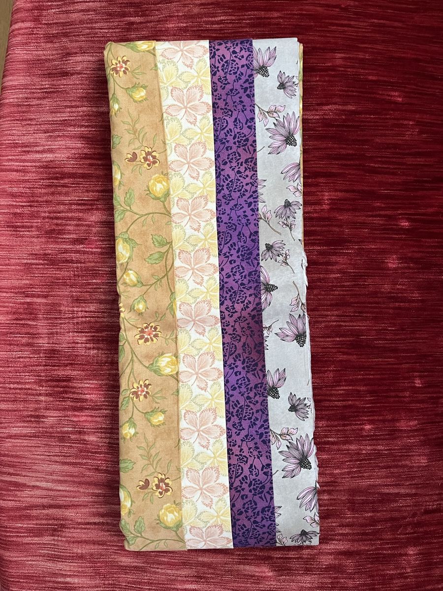 VenmoFind a fun new project for youself! Each piece of material is a yard. All are in wonderful new condition. The colors are golds, pink, greens, purple, gray and creams. In a smoke free home. Sold as a set. Price is firm.