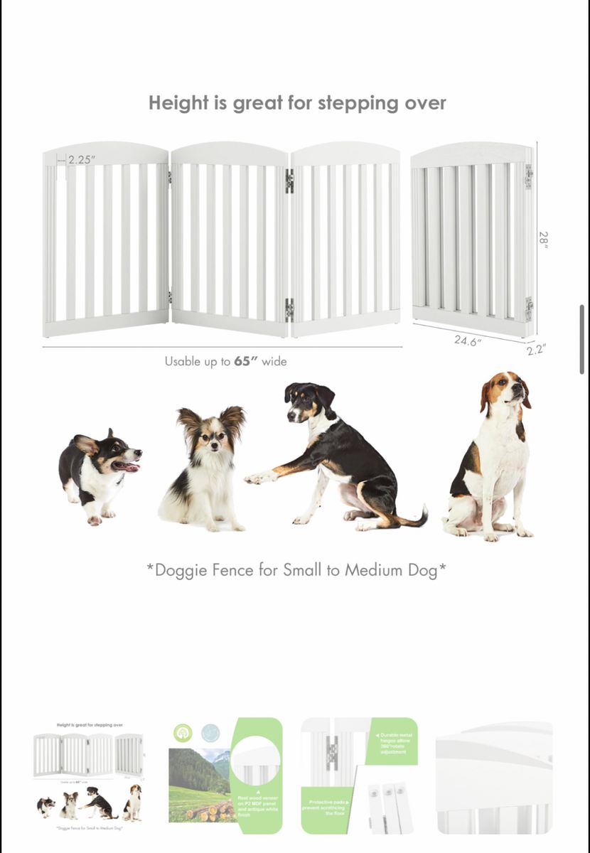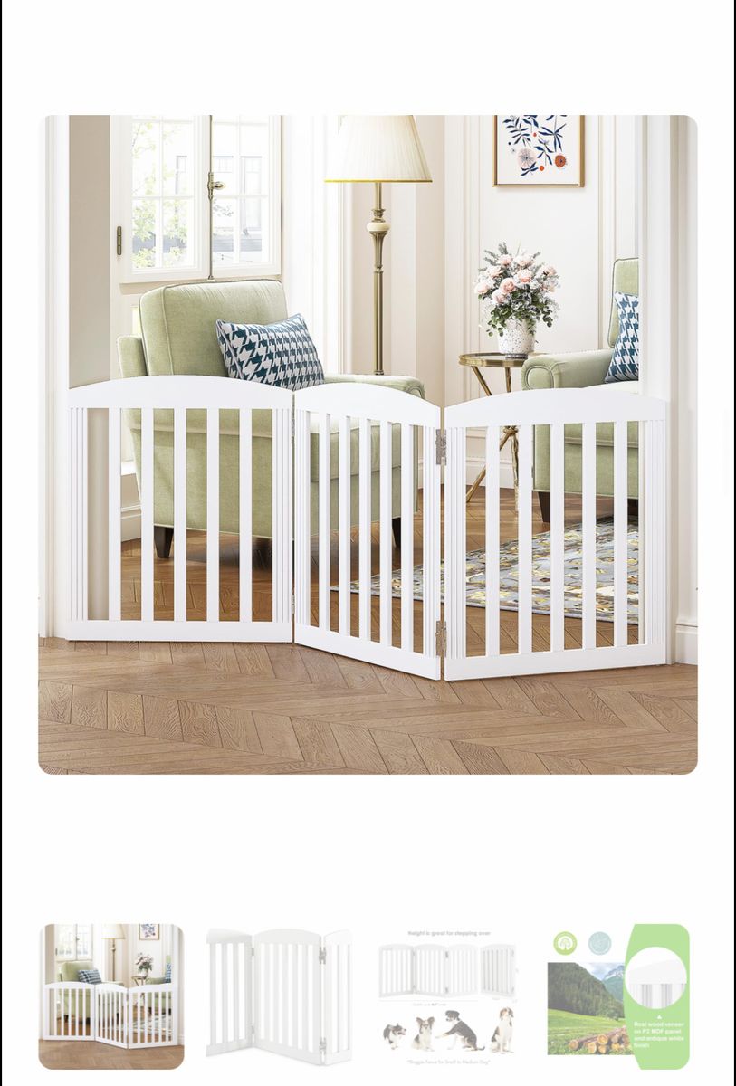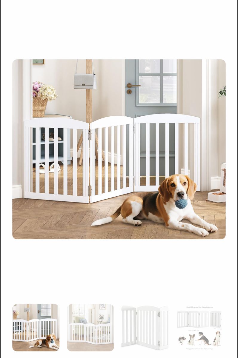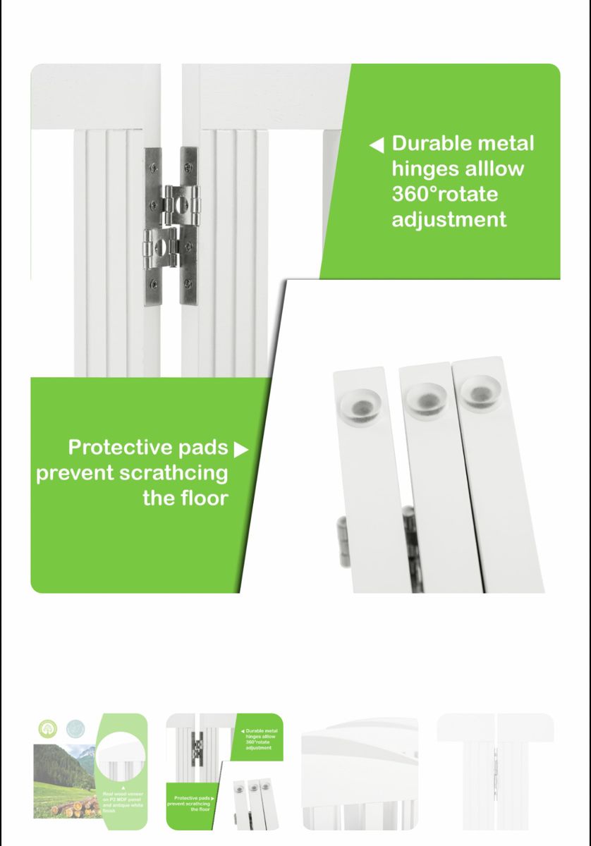 ApplePaySPIRICH Dog Gate Indoor, Dog Gates for Doorways, Stairs, The House, Wooden Freestanding Foldable Pet Gate, Extra Wide Step Over Puppy Gate, 3 Panels, White