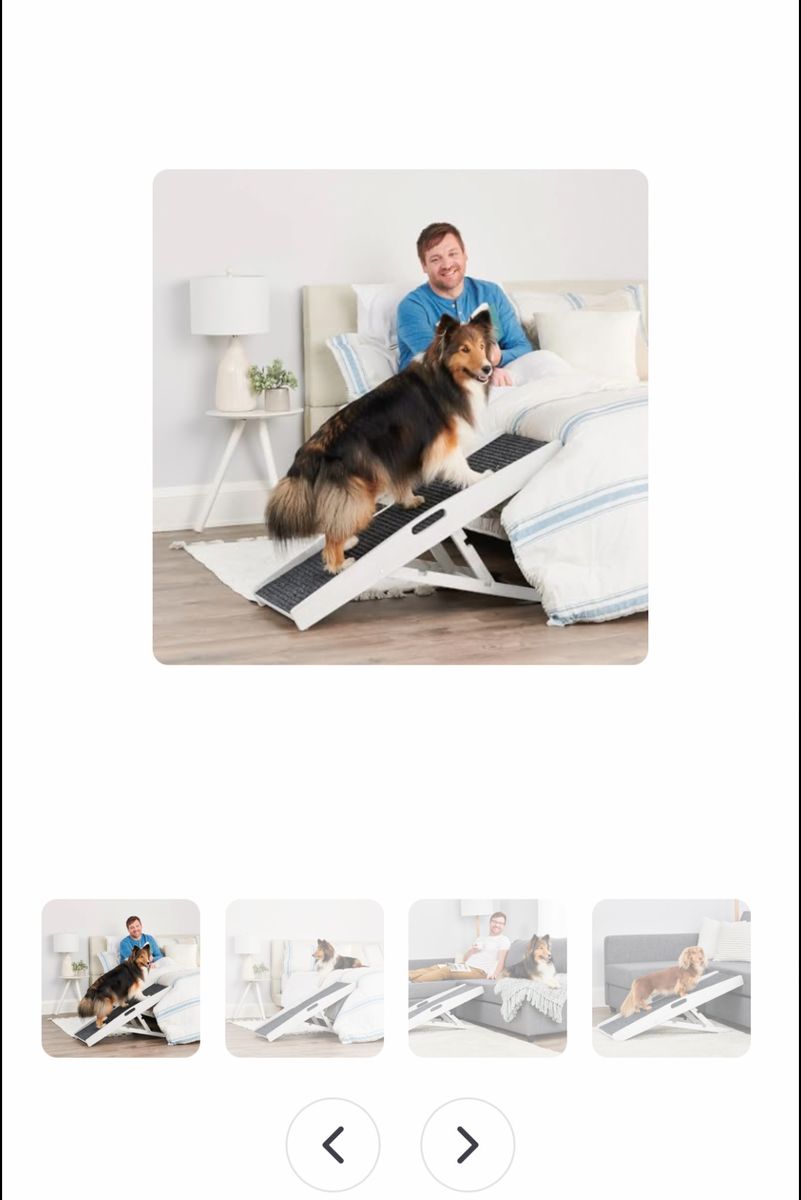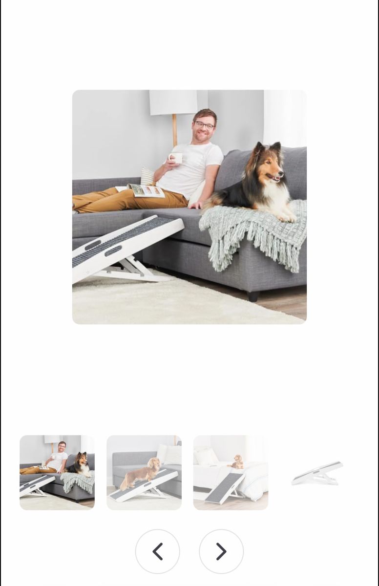 ApplePayCarlson 39.5" Indoor Pet Ramp, White, Collapsible, Adjustable Height, Includes Handles, Non-Slip Carpet, and Rubber Feet