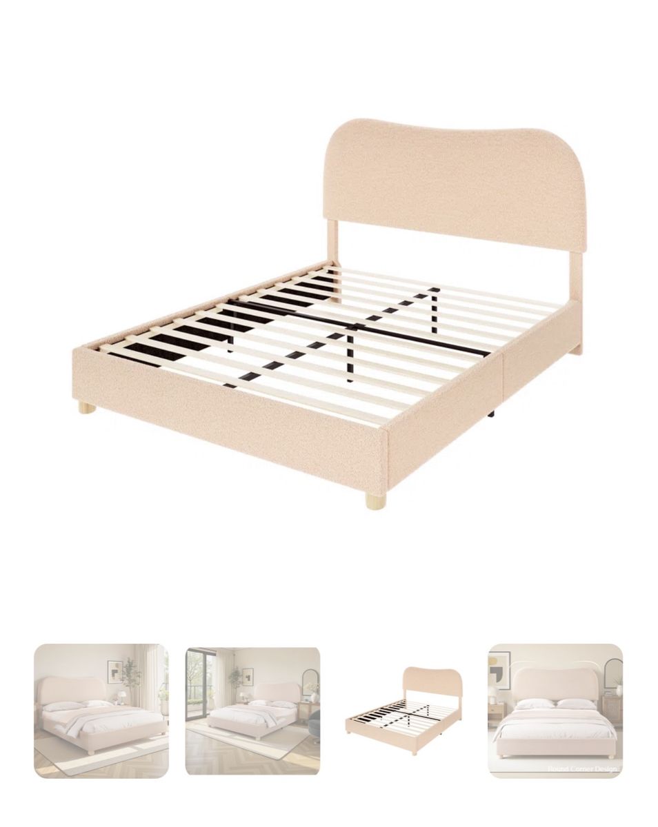 VenmoBeige full size platform bed with curvy headboard . New in box . $135