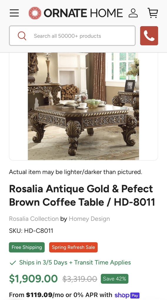 VenmoLuxury Ornate Coffee Table – Solid Wood, Originally $1500-1900 measurement in the pic