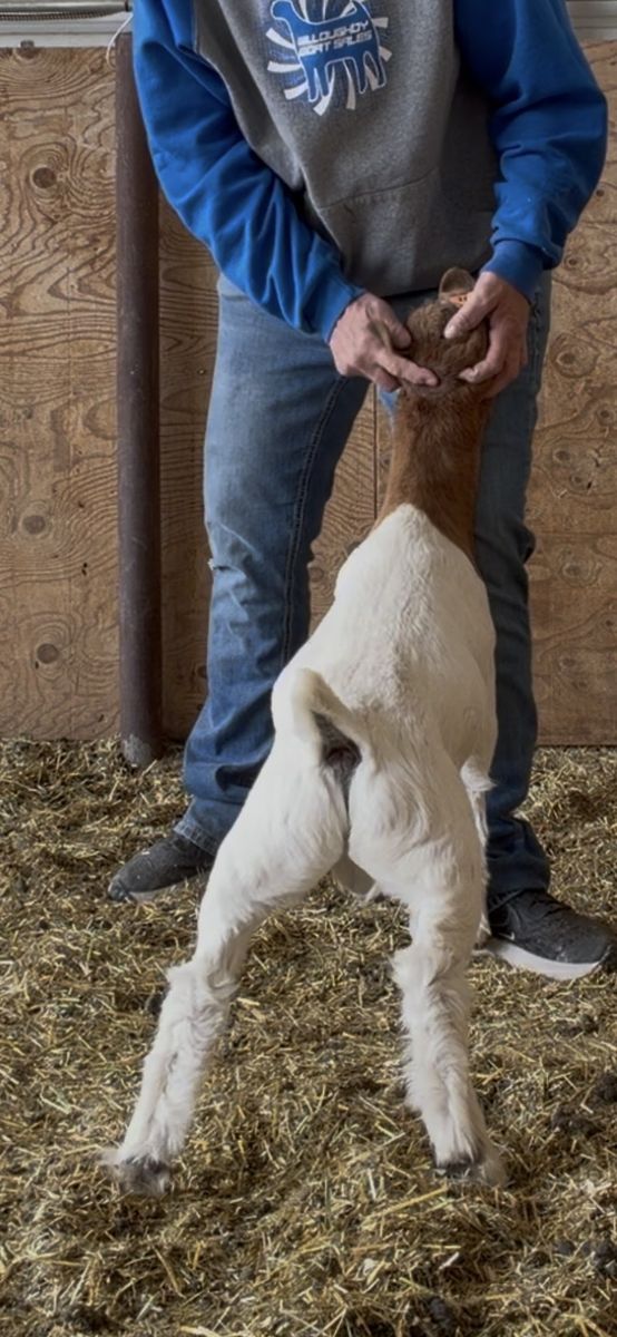He is lined up Safeword and Hummel. Born a triplet/ raised a triplet. Big boned, big backed, good topped, and tall shouldered. He looks the part but is still on the green side. Feed him up and watch him explode.
