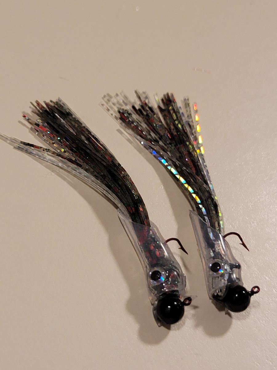 Eyes, flashabou, peacock hurl, are custom sold by the dozen for $50