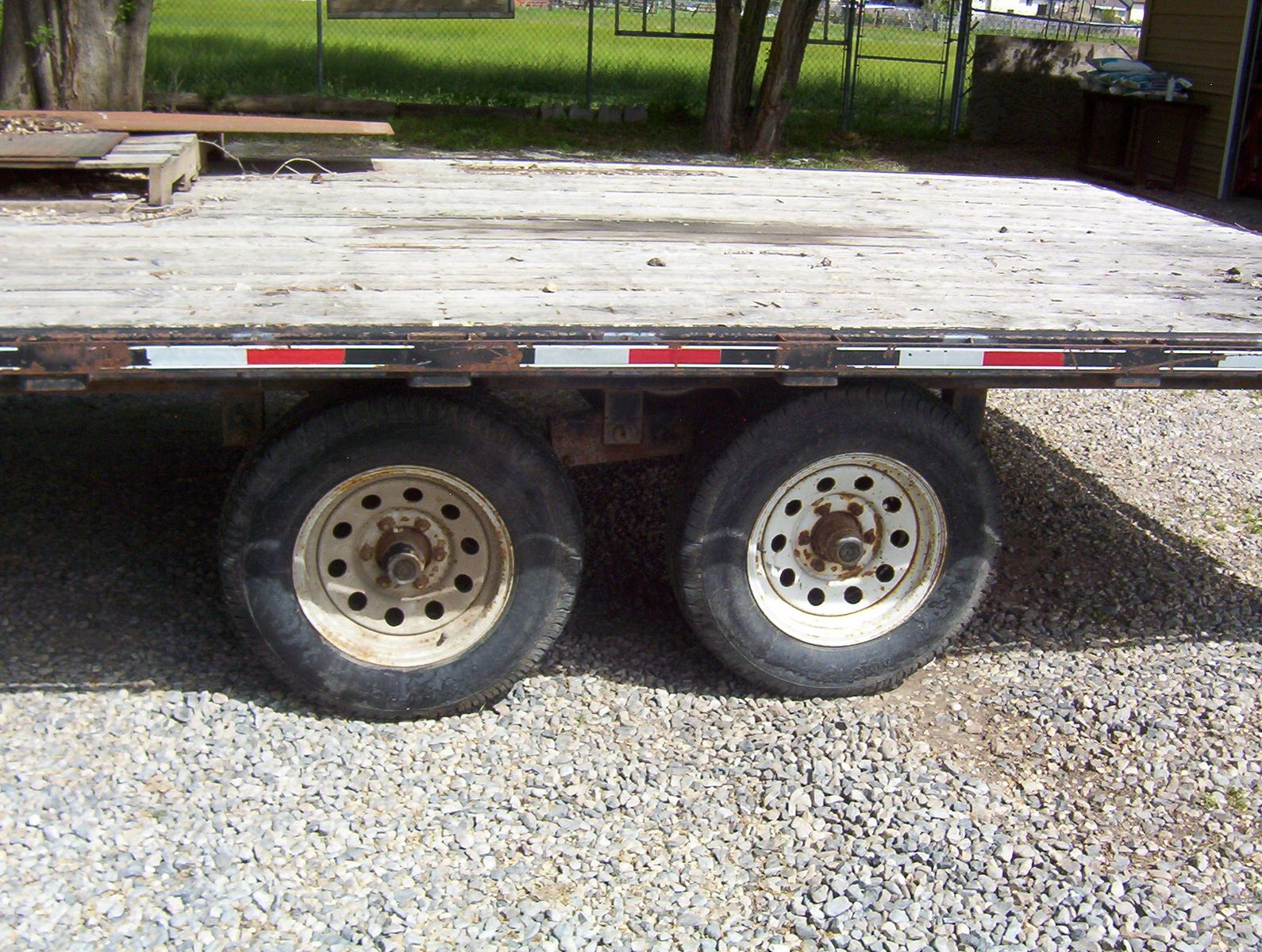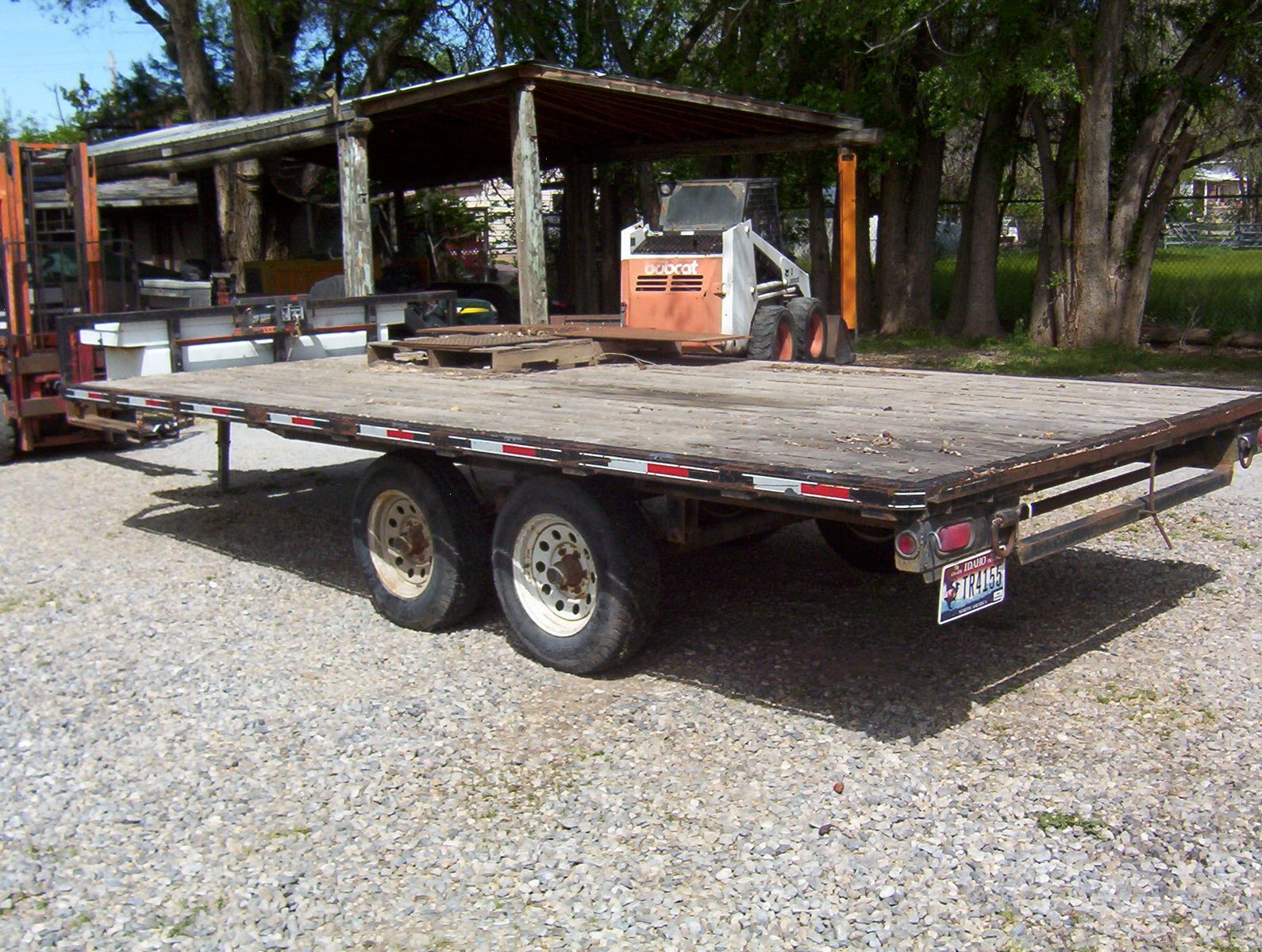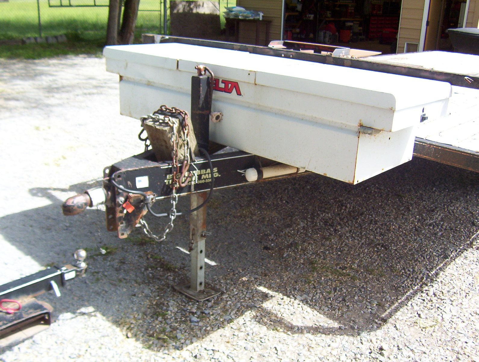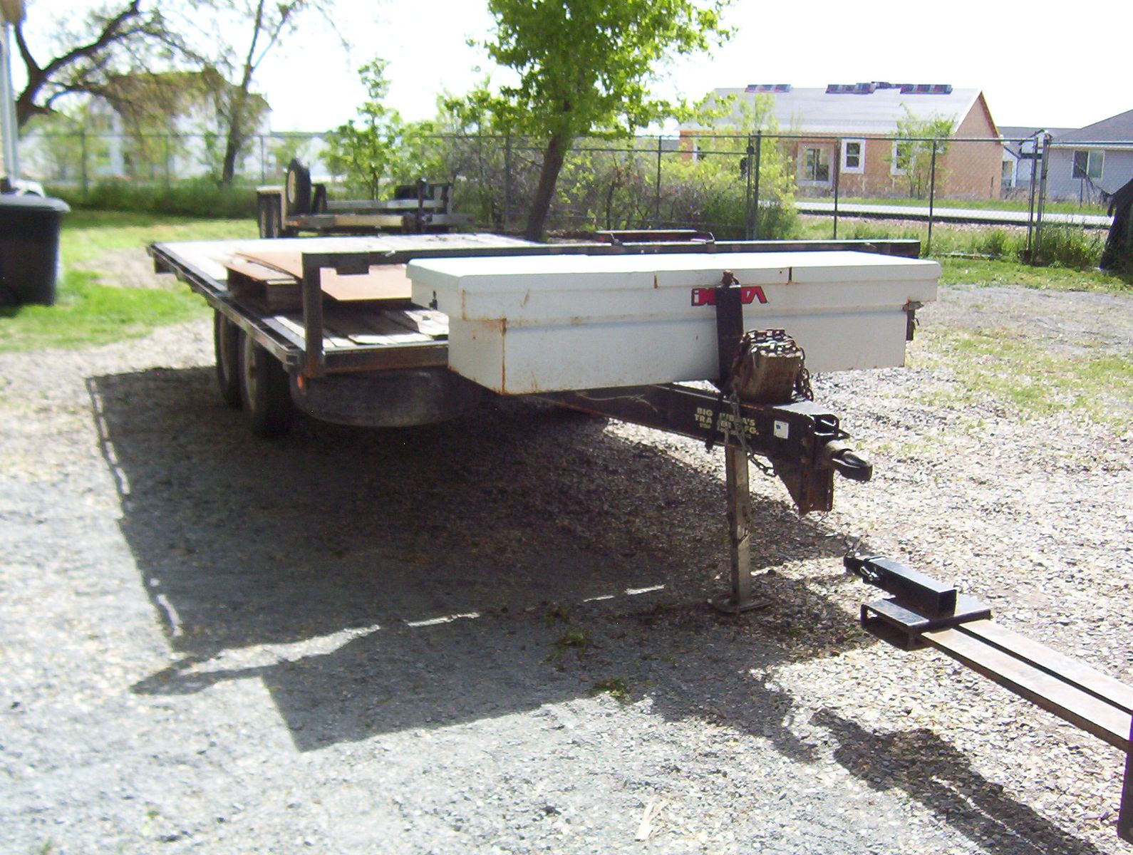 This is a 2003 Big Bubbas flatbed trailer. Everything is a little rough but still has plenty of miles left on it. The tool box will be unloaded and will go with trailer. It has a small winch which hasn't been fired up for a very long time. The bed is 16 feet long and 8 1/2 feet wide. The tongue adds another 4 feet. It is a tandem set up with spring suspension. I do not know the GVWR but I would guess 10000 pounds. I have hauled lots on this thing, pulls straight, and has decent tires. It has a ramp, rope hooks and chain rail. Text is best or call and leave a message. VIN 5F7UF16213U001657