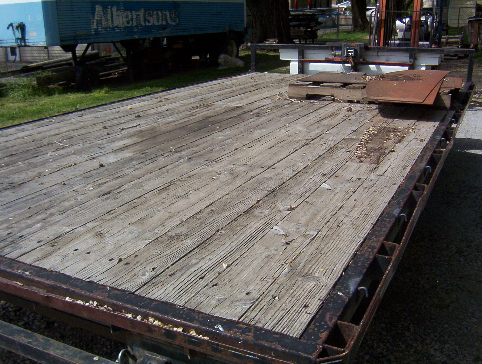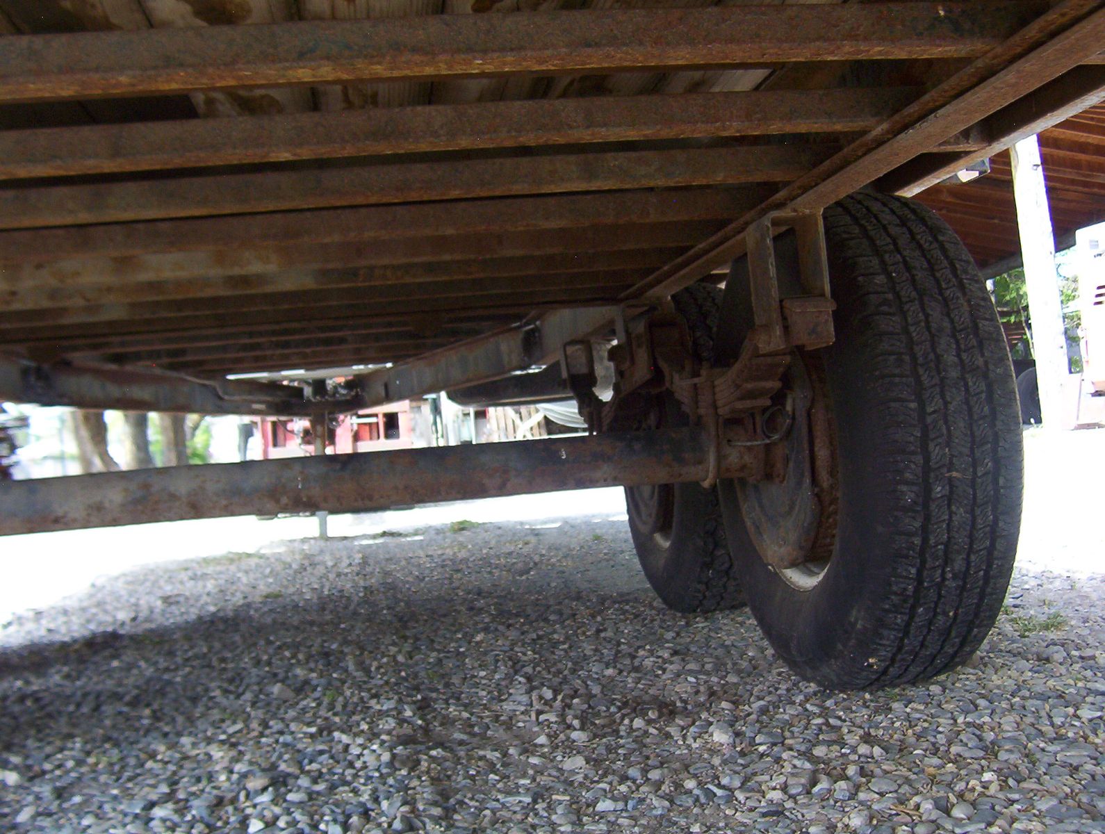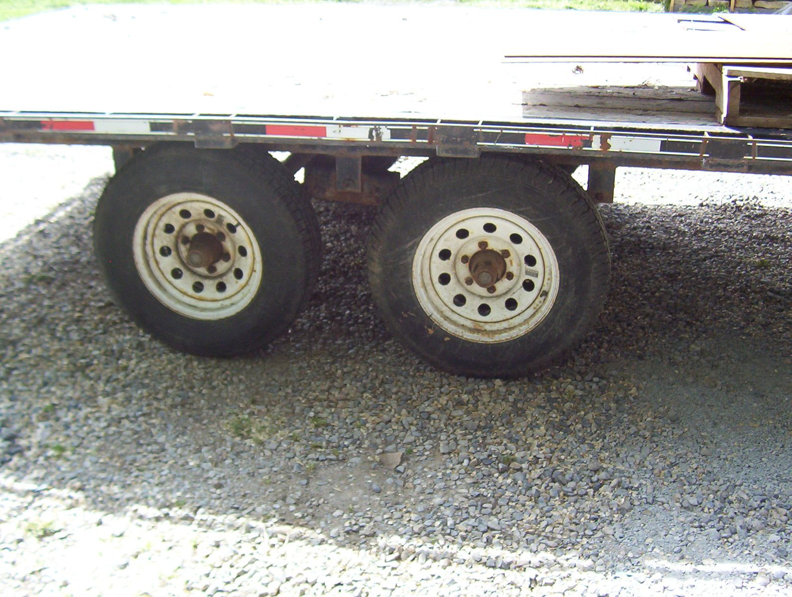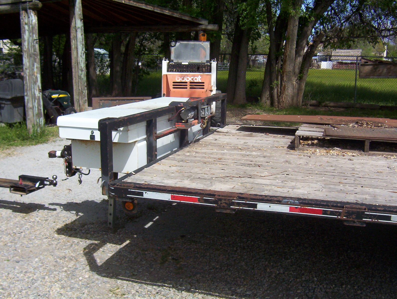 This is a 2003 Big Bubbas flatbed trailer. Everything is a little rough but still has plenty of miles left on it. The tool box will be unloaded and will go with trailer. It has a small winch which hasn't been fired up for a very long time. The bed is 16 feet long and 8 1/2 feet wide. The tongue adds another 4 feet. It is a tandem set up with spring suspension. I do not know the GVWR but I would guess 10000 pounds. I have hauled lots on this thing, pulls straight, and has decent tires. It has a ramp, rope hooks and chain rail. Text is best or call and leave a message. VIN 5F7UF16213U001657