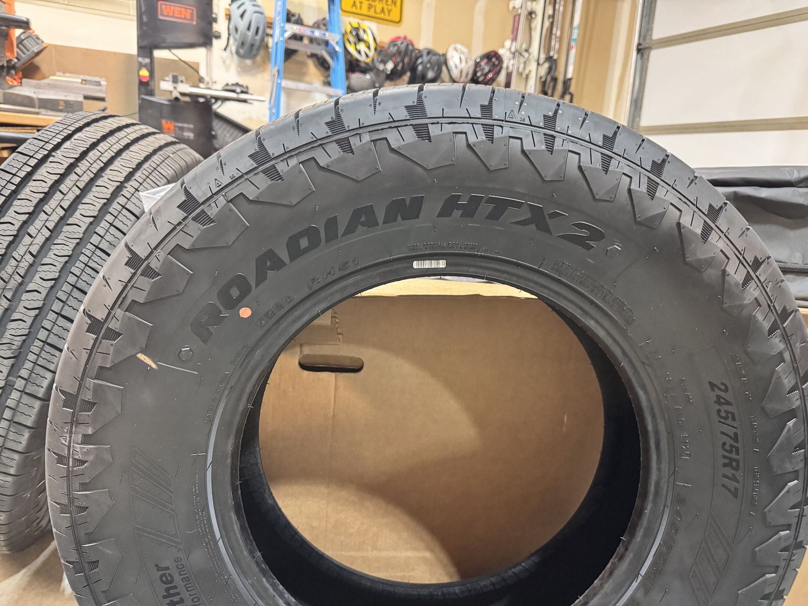 ApplePayBrand new tires that came on jeep wrangler. These are factory all weather tires. I have 5 of them, literally less than 20 miles on them. Retail around $210-235/tire. OBO