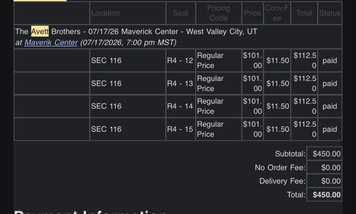 ApplePayFour tickets to the Avett Brothers