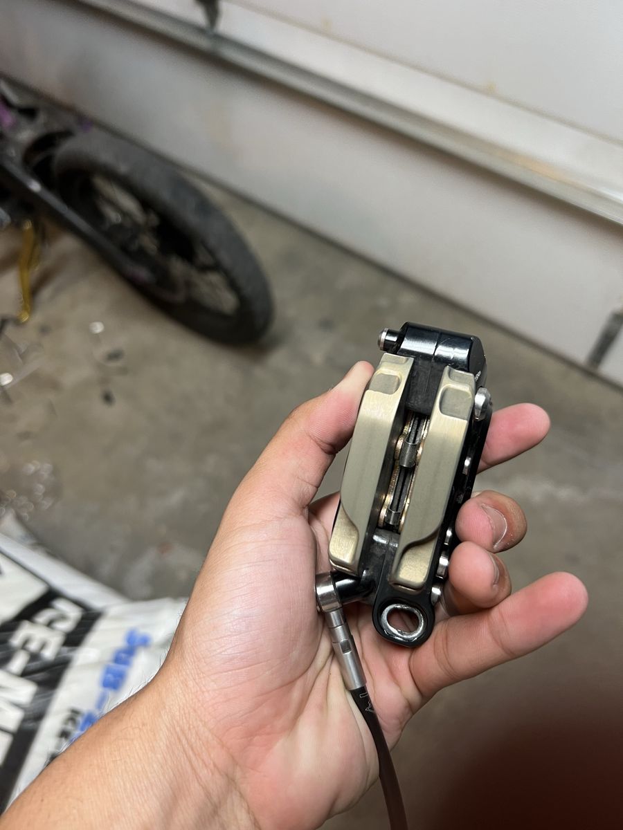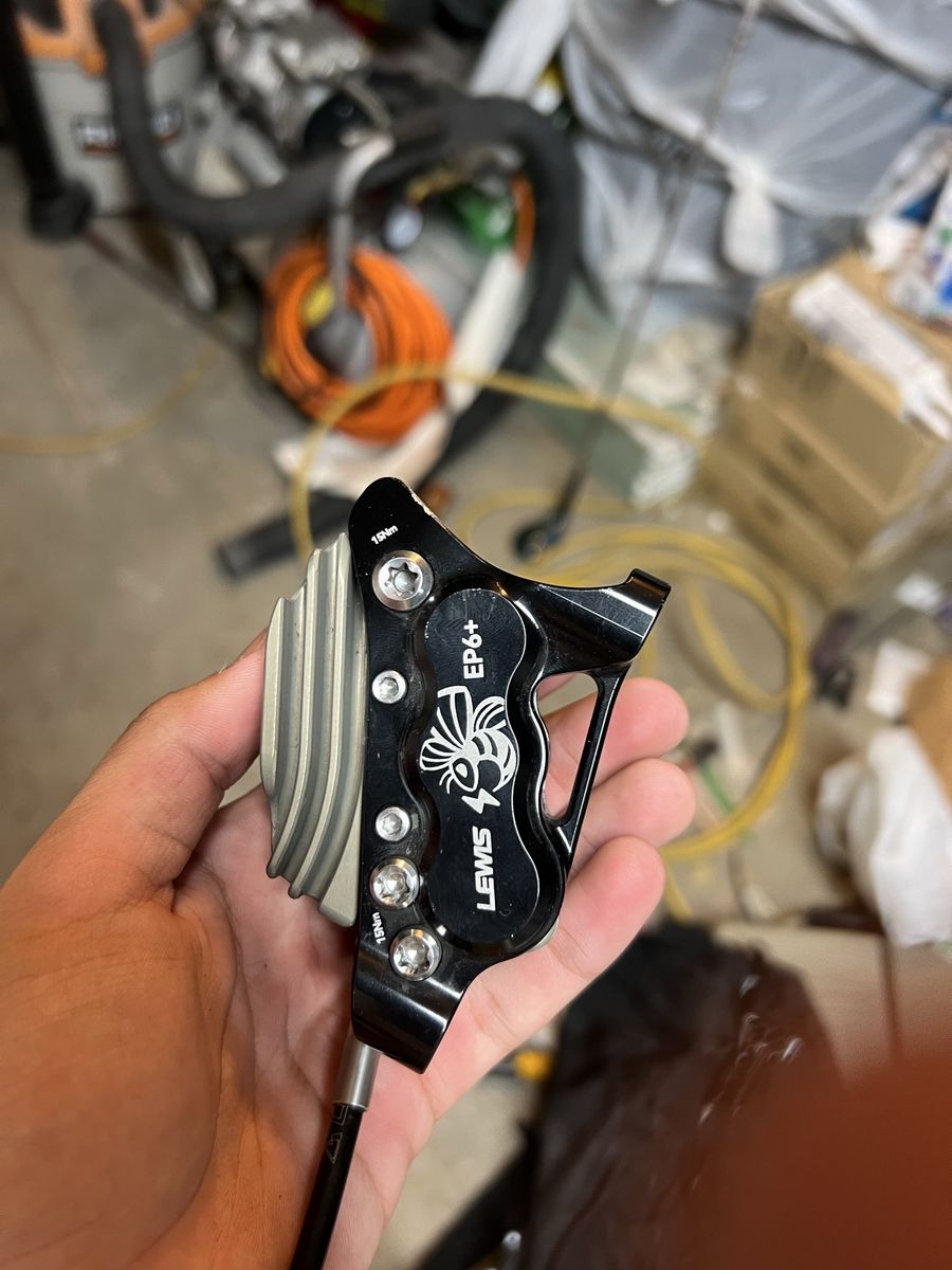 6 piston lewis take brake. in great condition just looming to get rid of things going unused. it’s got some crazy insane stopping power and DOT5 fluid full metal caliper and lever/resiviir with a braded cable and a rubber cable on top. for both emotos and mountain bikes. got more power than an ultra bee and formula brake or dnis brakes. will trade for other things like brakes as well or really anything.