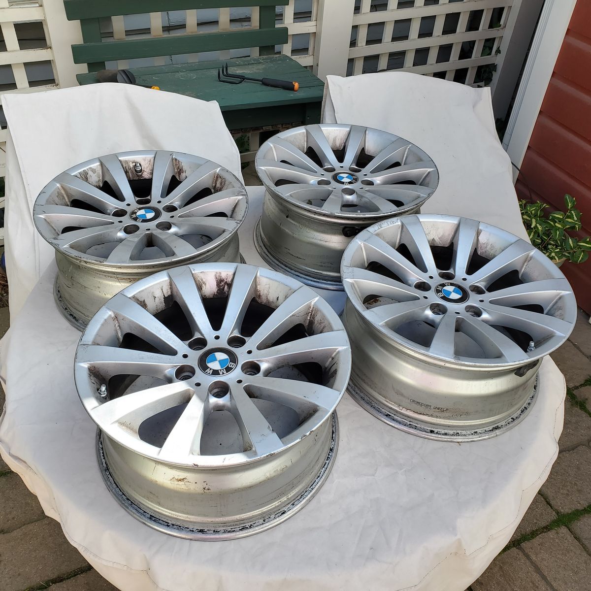 VenmoPulled tires off of these for my BRZ, OEM wheels from a 2008 BMW 328. Rashed up a little but no dents / alignment issues. Would be a good set for winter tires so you don't have to mount / dismount tires on the same wheels every year, or replacement set for an OEM look. Come with all 4 center caps and TPS on each wheel.