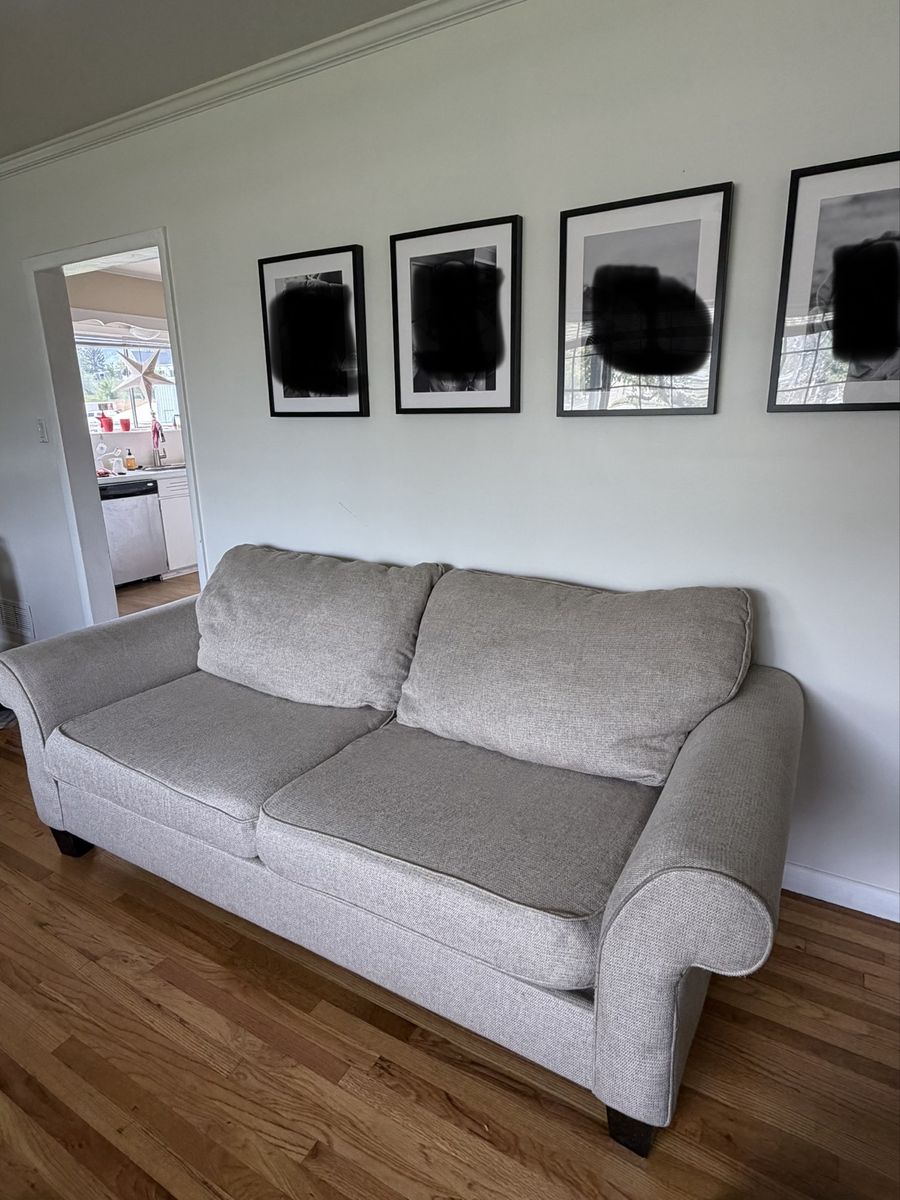 VenmoCute couch. In good condition. No rips or tears. Just cleaned. Comes from pet and smoke free home 86” wide 40” deep 30” tall