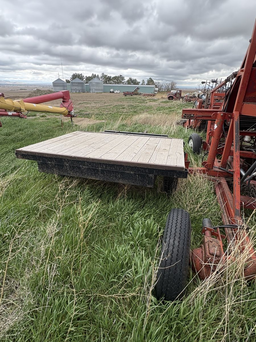 5x7 deck space. Its well built was used to haul a generator around but sold it. Woods in good shape Tires are in good shape located in newdale id serious inquiries only price obo.