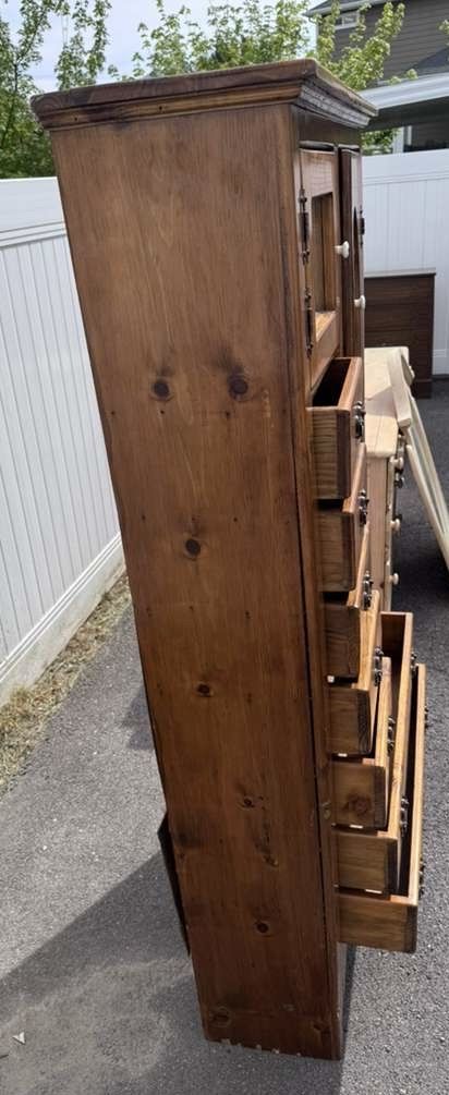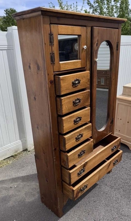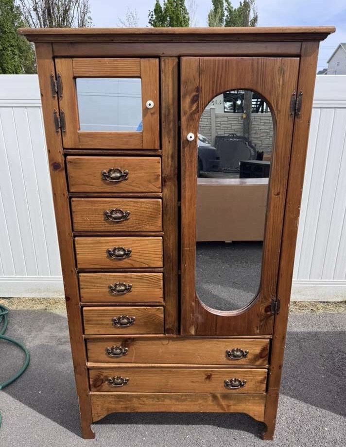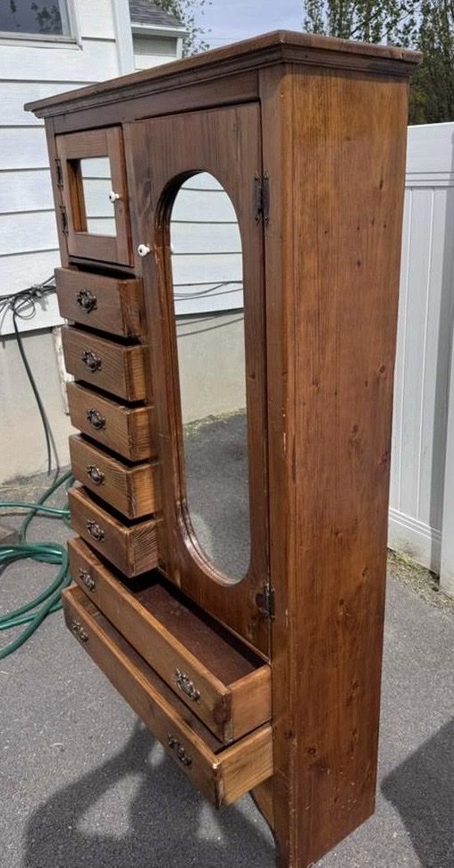 VenmoAntique dresser! The door doesn’t quite latch all the way. Drawers are all good. Willing to deliver for $50.