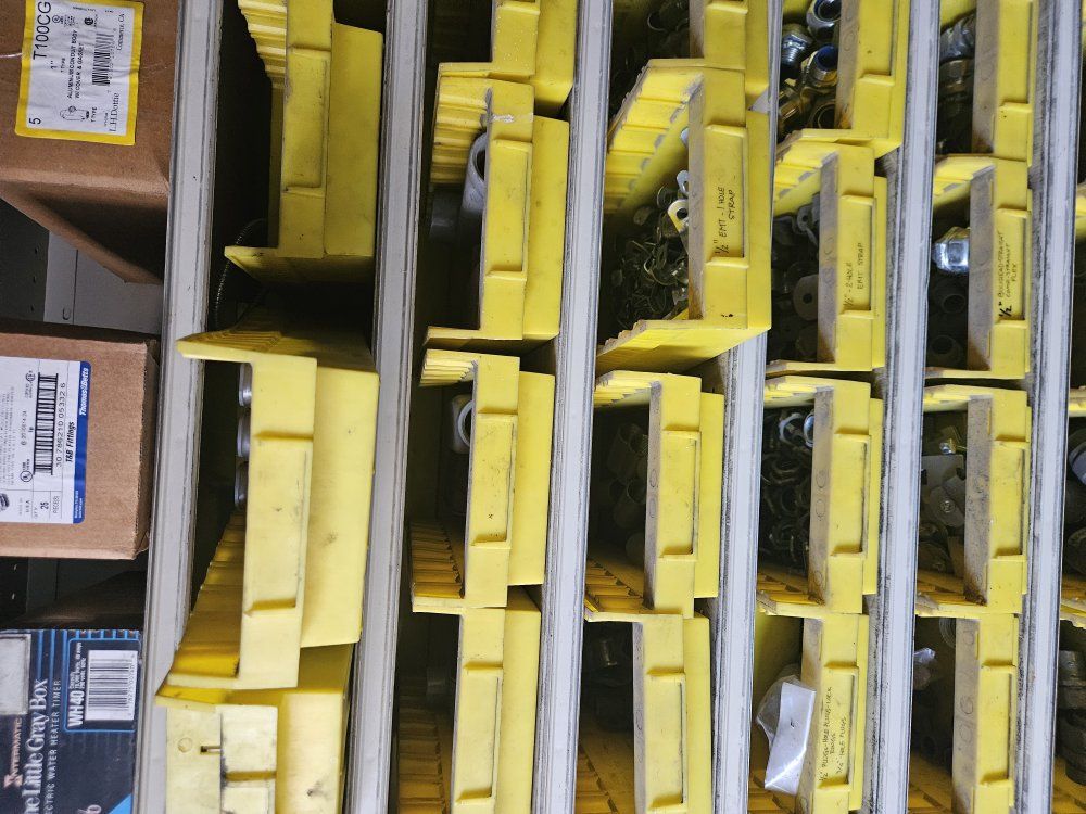 shelf bin organized with everything in the picture to much to name it all