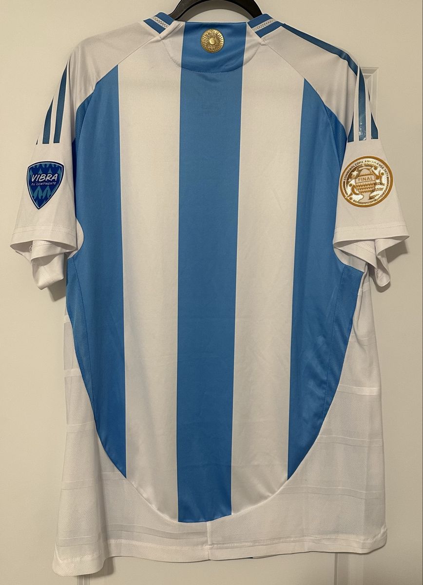 Both the jersey and ball are new. The ball is official size 5, FIFA quality. The jersey is size XL.