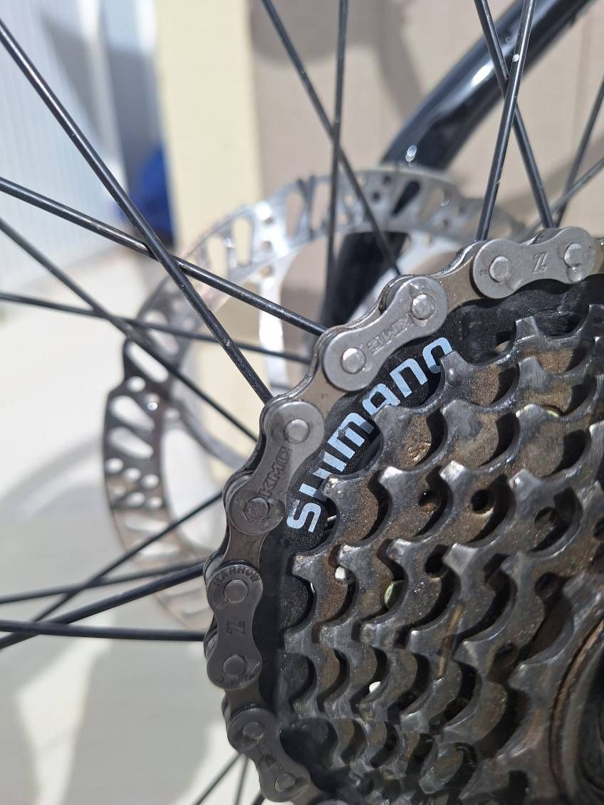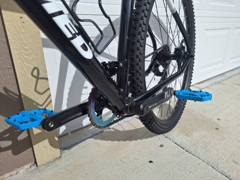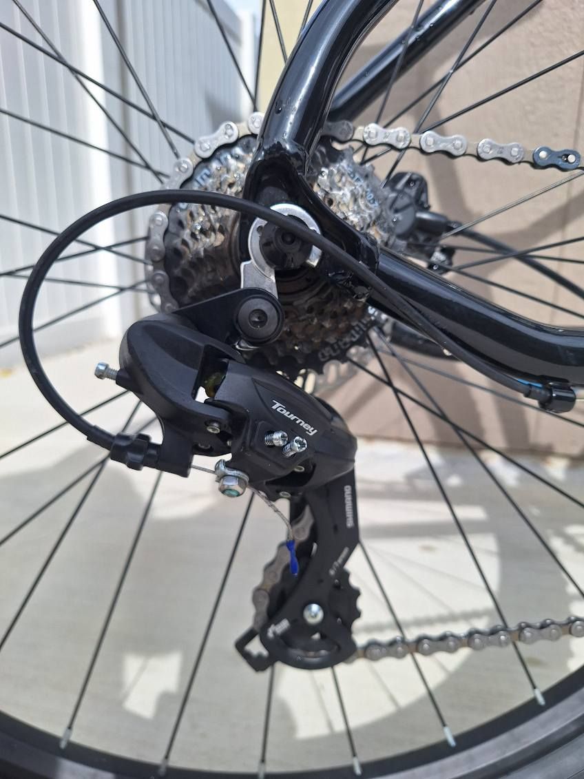 The bike has primarily been ridden by the wife on the neighborhood roads and was on dirt trails less than 5 times. The frame has no cracks, the rims have no cracks, and it shifts smoothly. The tubes both have slime and hold air, the bottle cage will come included on the bike.