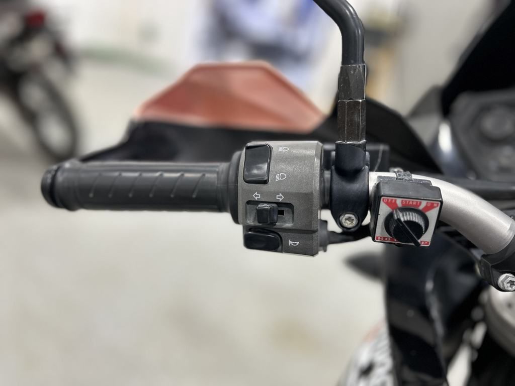 The bike features digital instrumentation, including a trip computer, fuel level warning, and temperature warning.