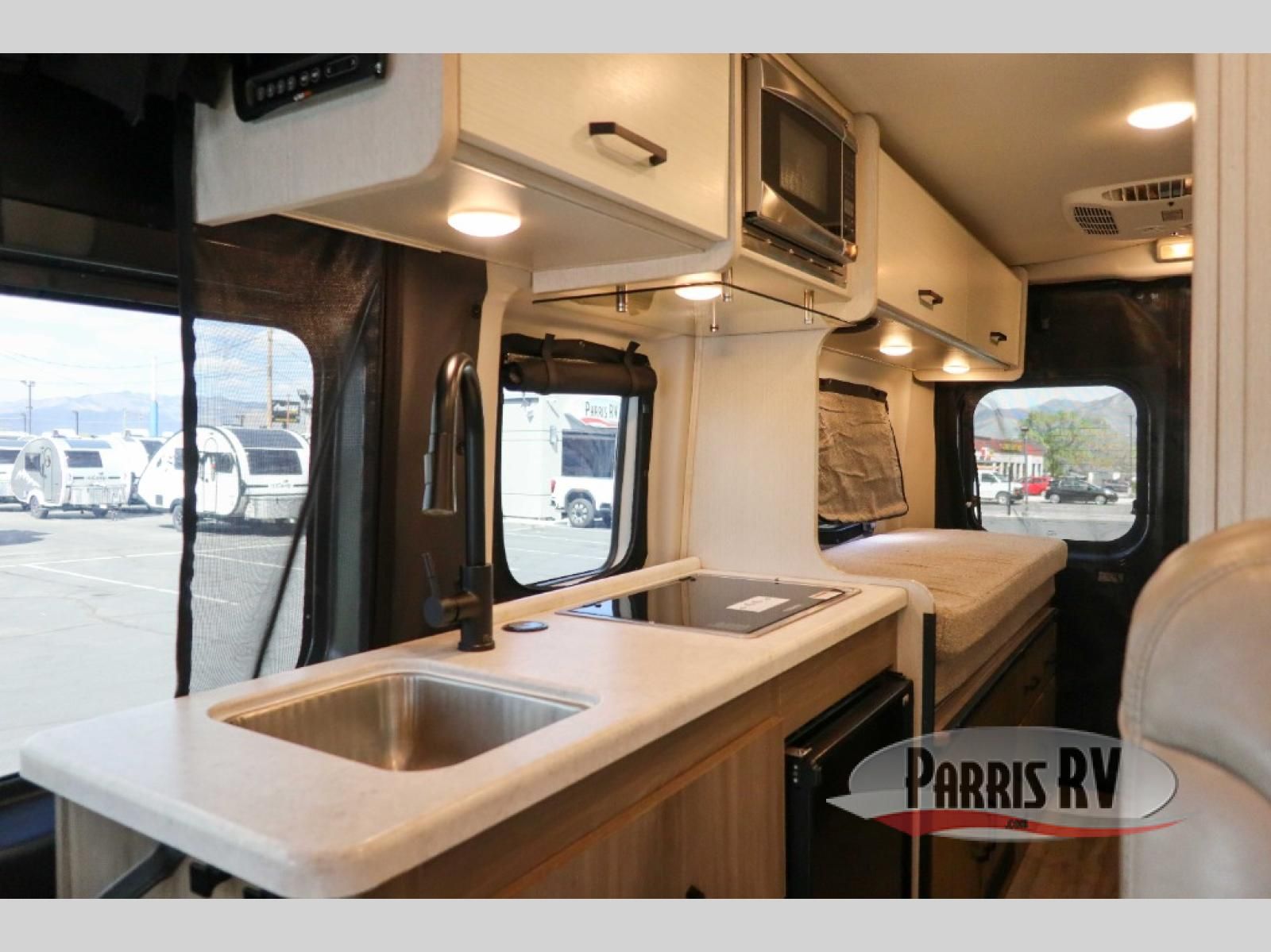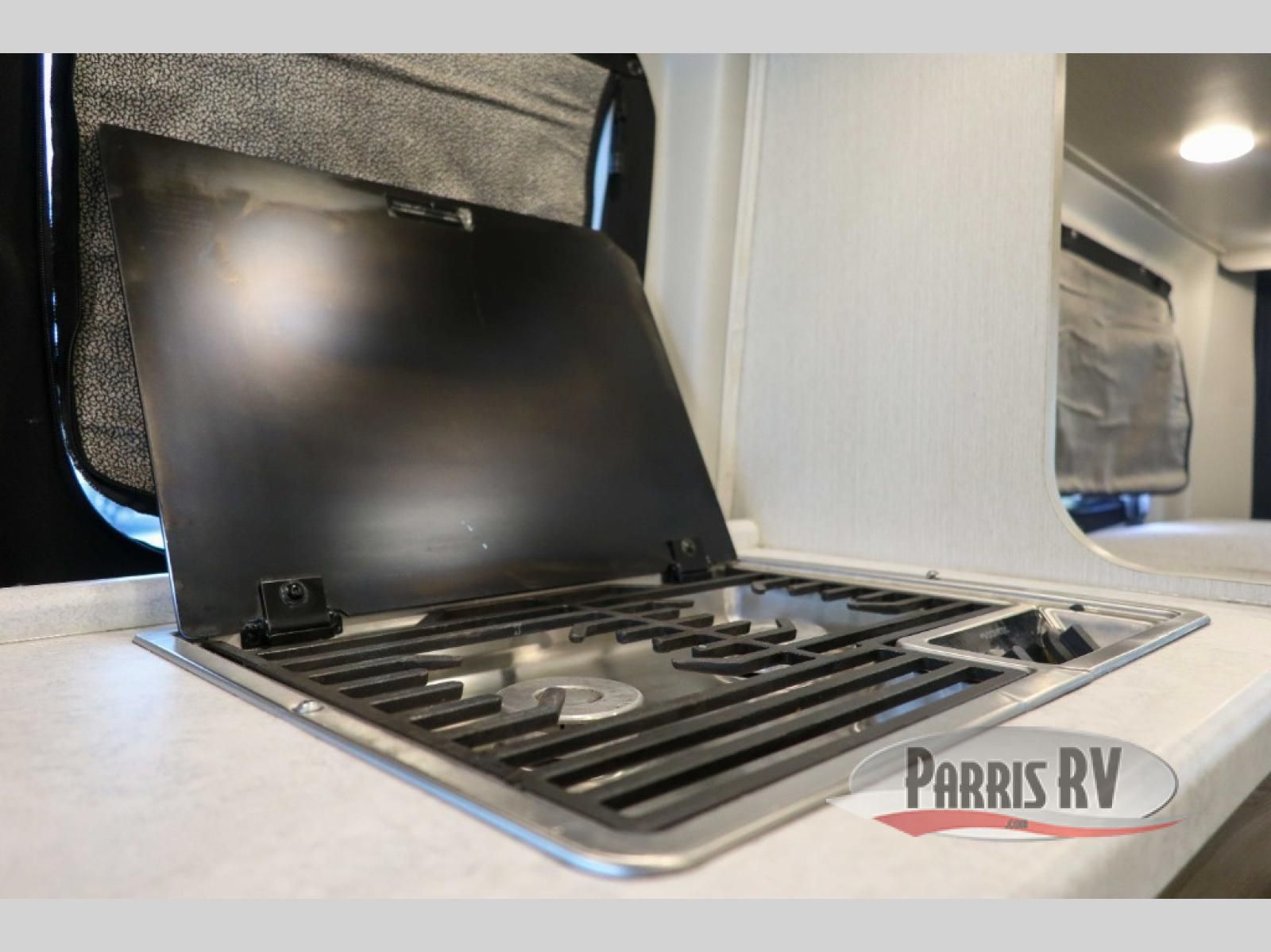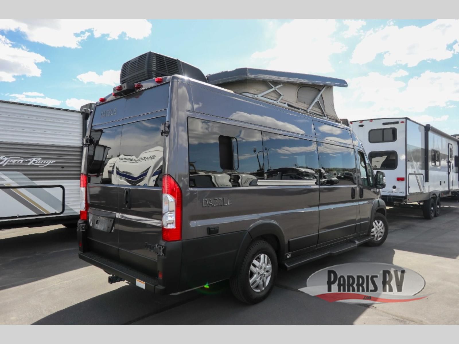 The Dazzle Class B motorhome gets you out there with plenty of features for a great trip! You'll enjoy meals at the dinette table, with a kitchen featuring a single door 12V refrigerator and a two burner gas cooktop with a glass cover. The undermount sink has covers for a cleaner look and expanded workspace. The wet bath comes with a cassette toilet, shower, and a power bath vent. At the rear, you'll find a pull-out king bed, two opening windows, and a rear screen door so you can enjoy a nice cross breeze while you sleep.