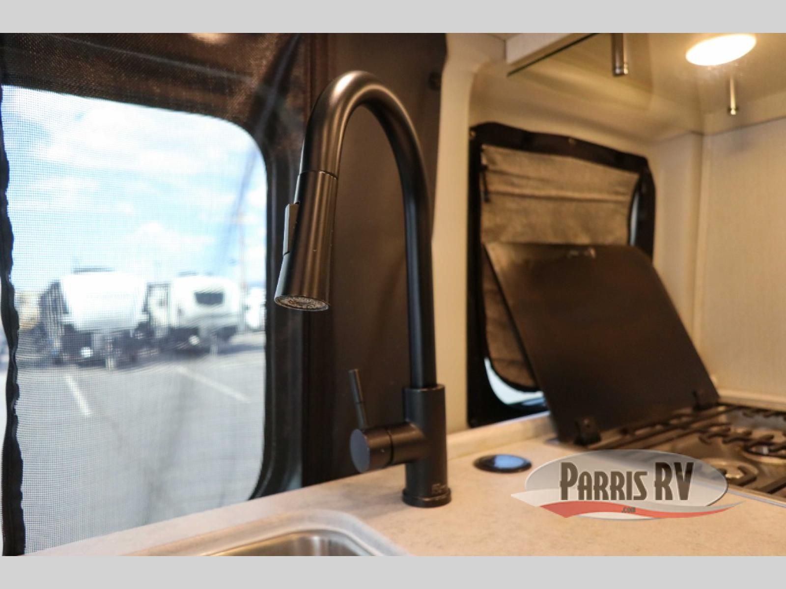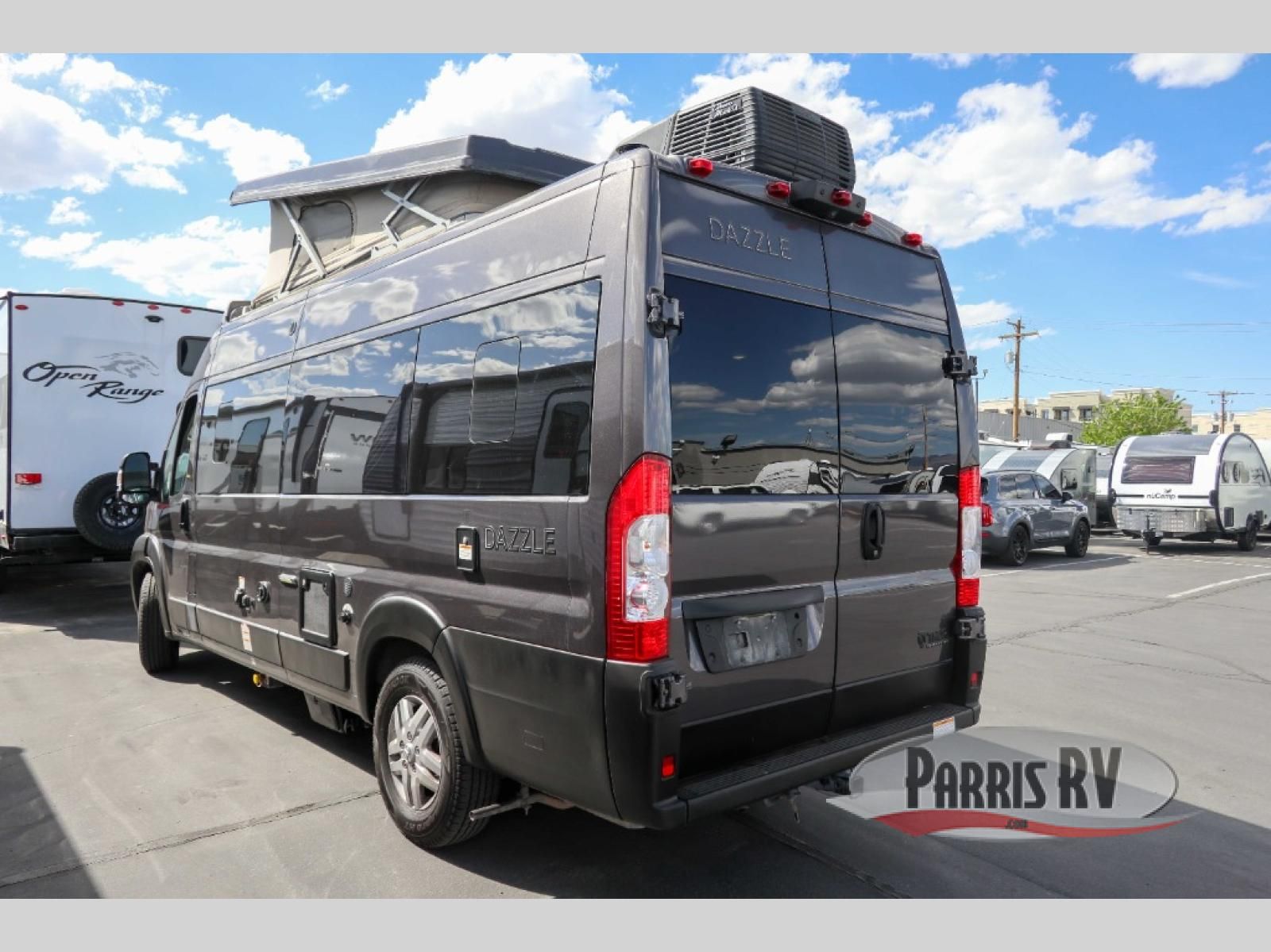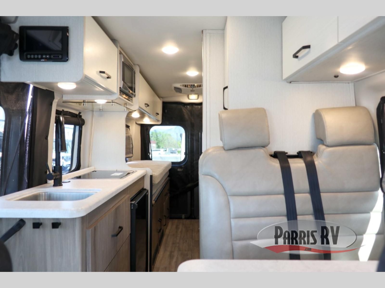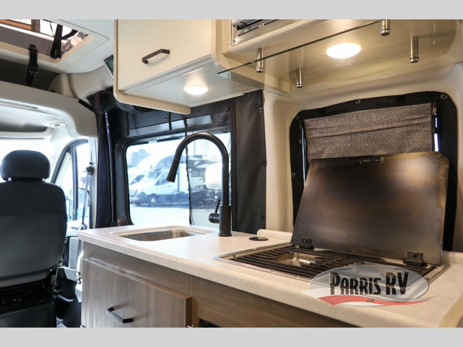 The Dazzle Class B motorhome gets you out there with plenty of features for a great trip! You'll enjoy meals at the dinette table, with a kitchen featuring a single door 12V refrigerator and a two burner gas cooktop with a glass cover. The undermount sink has covers for a cleaner look and expanded workspace. The wet bath comes with a cassette toilet, shower, and a power bath vent. At the rear, you'll find a pull-out king bed, two opening windows, and a rear screen door so you can enjoy a nice cross breeze while you sleep.