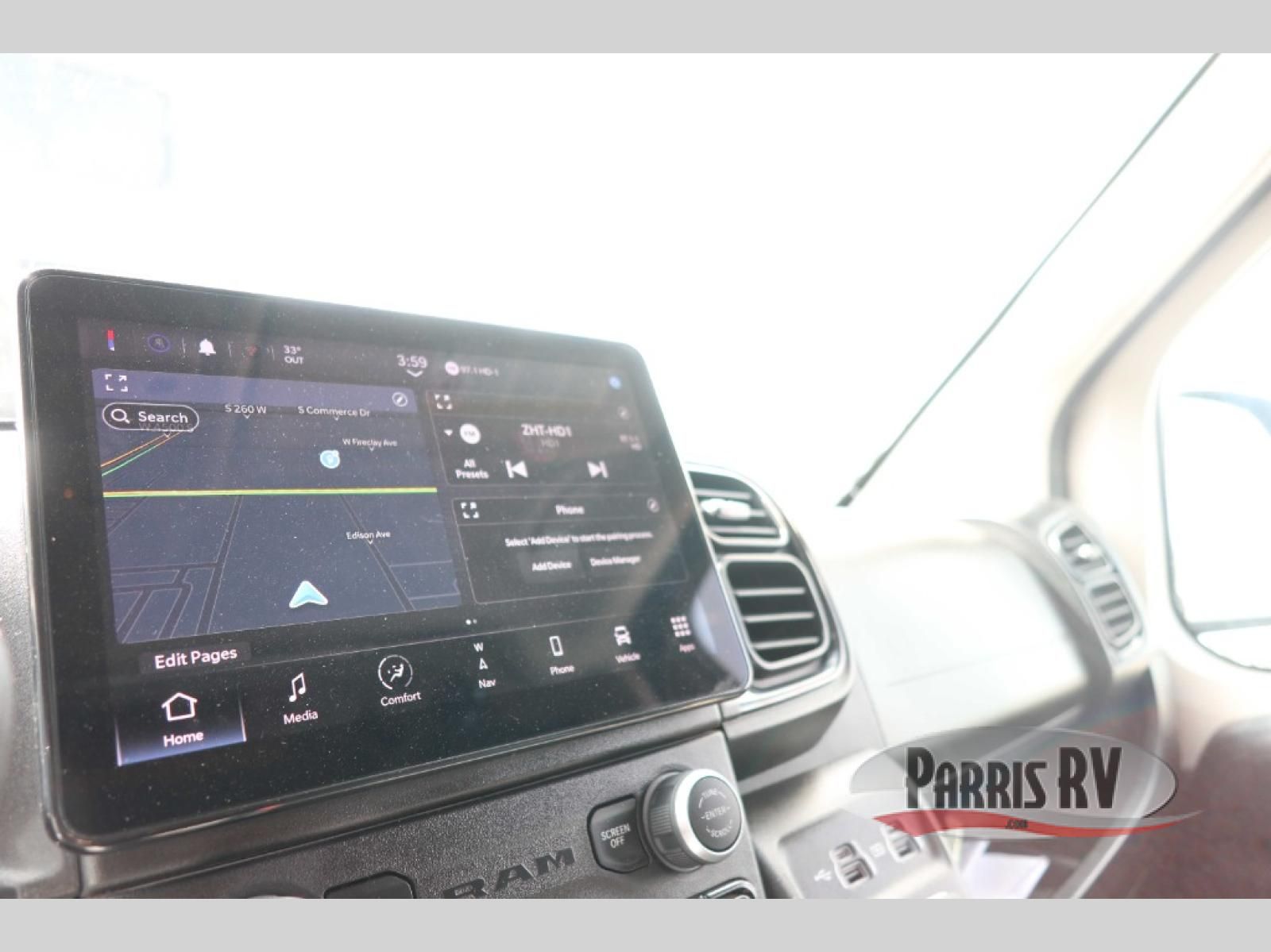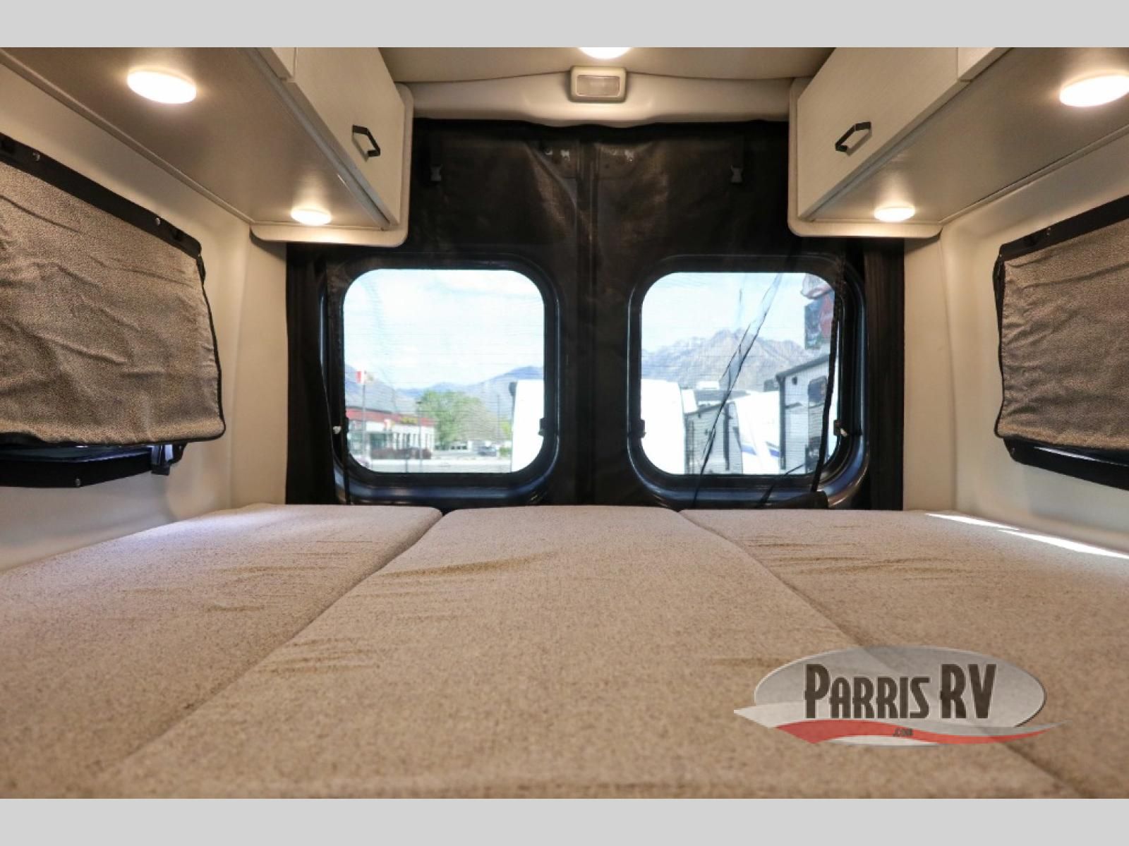 Plenty of amenities are packed into the Thor Motor Coach Dazzle Class B motorhome. Built on the RAM ProMaster® 3500XT gas window van chassis, these come with a 3,500 lb. trailer hitch, an Onan® RV QG 2800 gas generator, and a Truma® Combi Eco LP furnace and water heating system. You'll have a convenient Rapid Camp+® Multiplex wiring control system, which allows you to operate features like lights, generator, slides, awnings, HVAC, and more with an easy to use small handheld remote. Inside, you'll enjoy residential vinyl flooring, a soft-touch vinyl ceiling, and pressed countertops with an undermount sink and sink covers to name a few comforts.