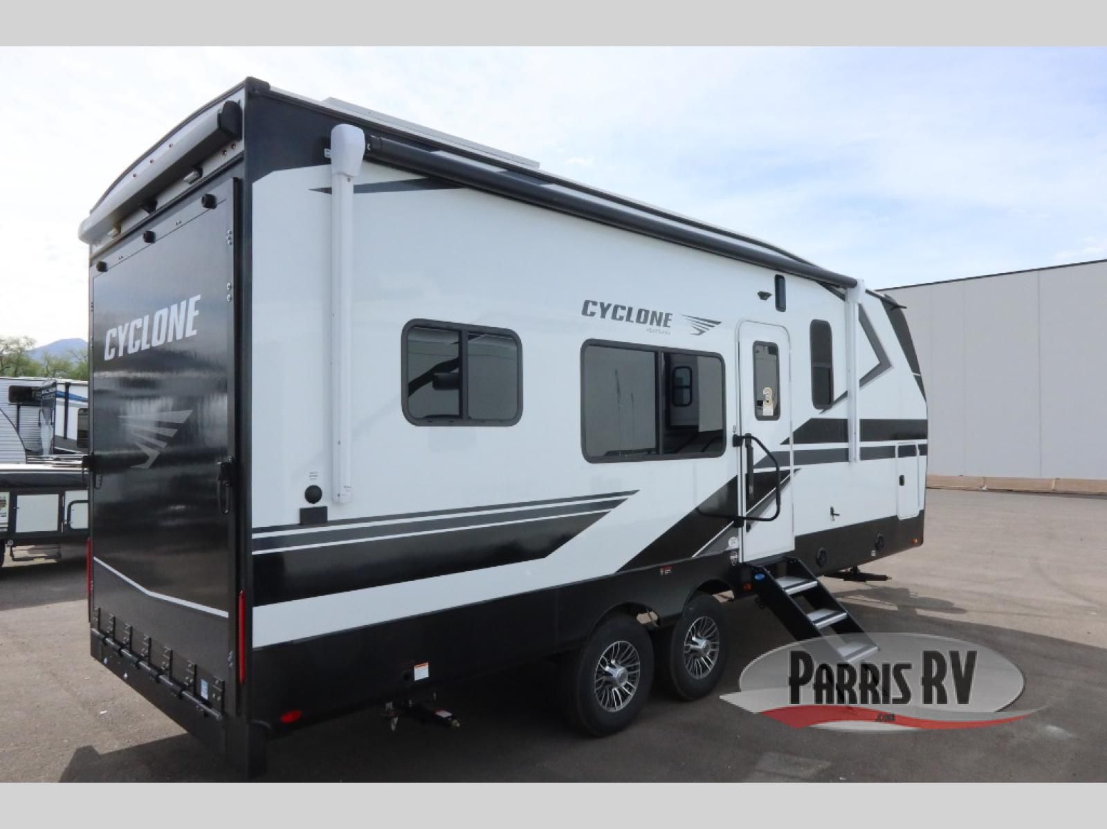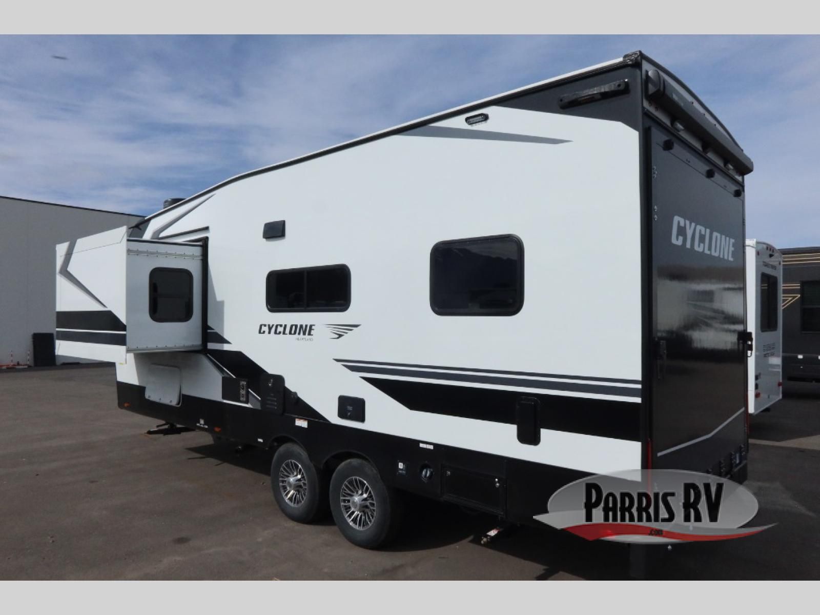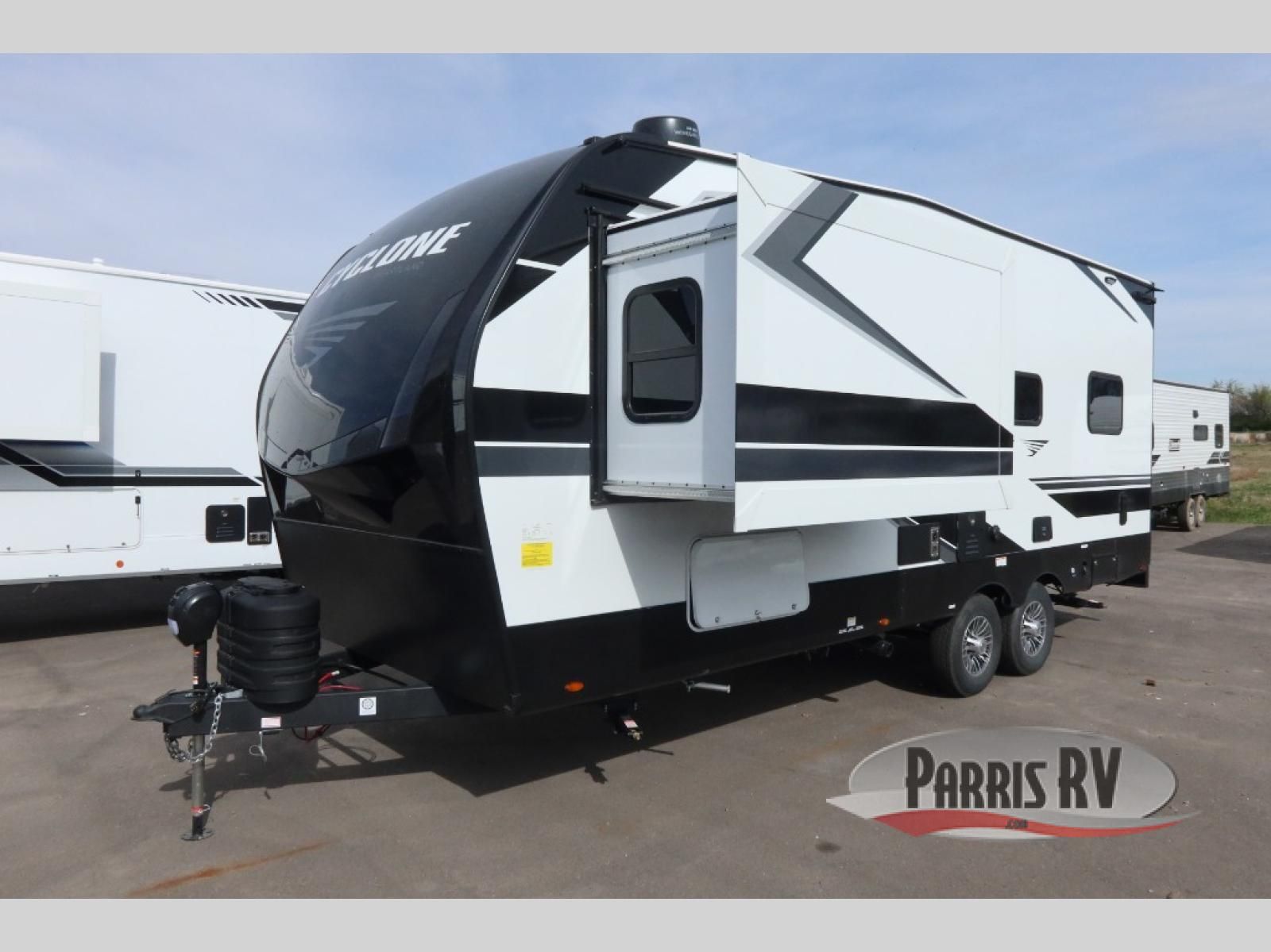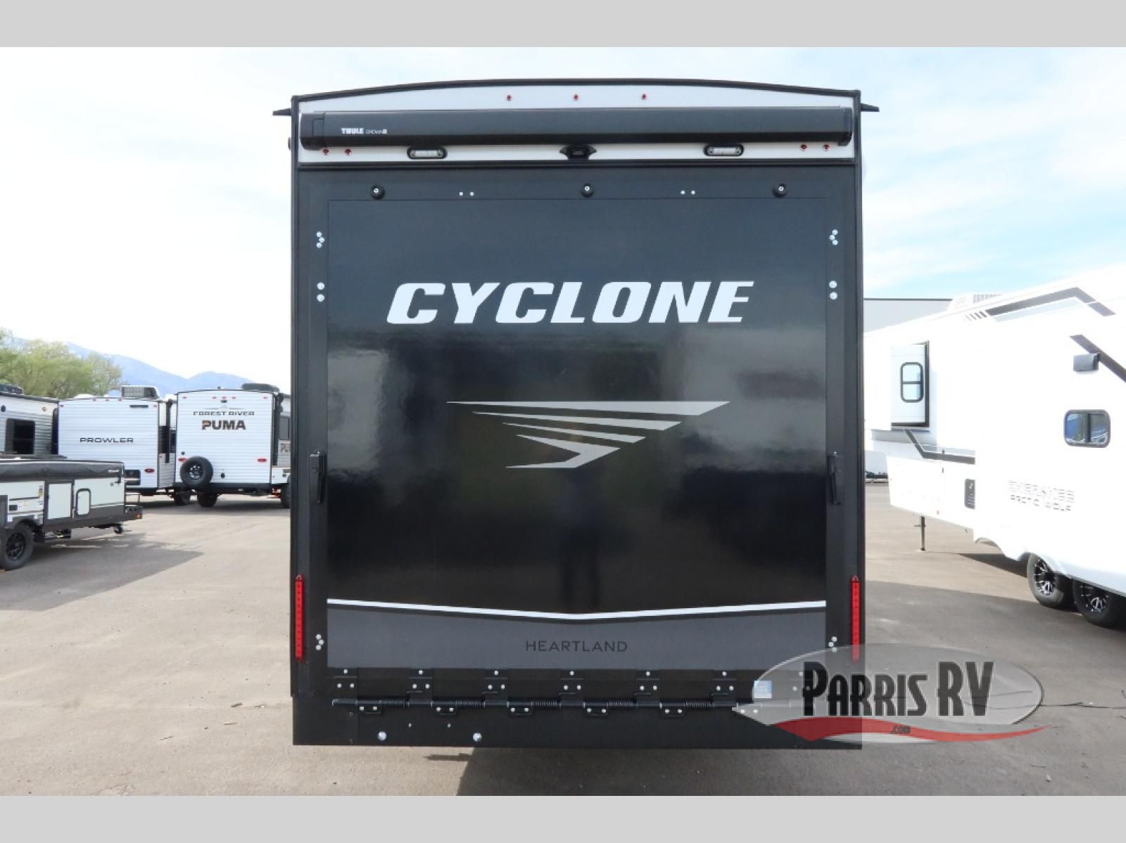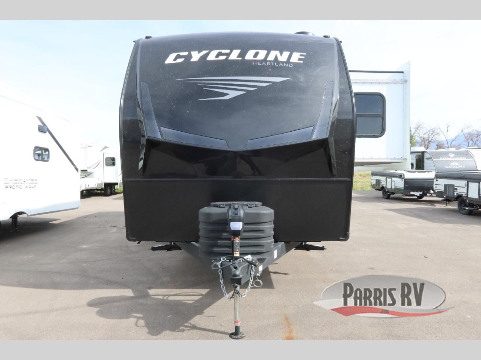 Satisfy your wanderlust with a Heartland Cyclone travel trailer toy hauler! You won't have to sacrifice any luxury either, with indulgent features like the ducted, fully enclosed, and heated underbelly that provides added protection and warmth. Inside, the LED interior lighting throughout ensures that every corner of your RV is bright and inviting, and the bathroom skylight brings in natural light and fresh air, creating a welcoming and refreshing space. Plus, the central command center with built-in tank monitoring keeps you informed and in control, making it easy to manage your resources. Also, the Endurance Handling Package includes diverse features such as Dexter axles with Nev-R-Adjust brakes and E-Z Lube hubs, and the Keyed-Alike lock system ensures that all your locks are keyed the same, providing added security and convenience. Come find the perfect model for you today!