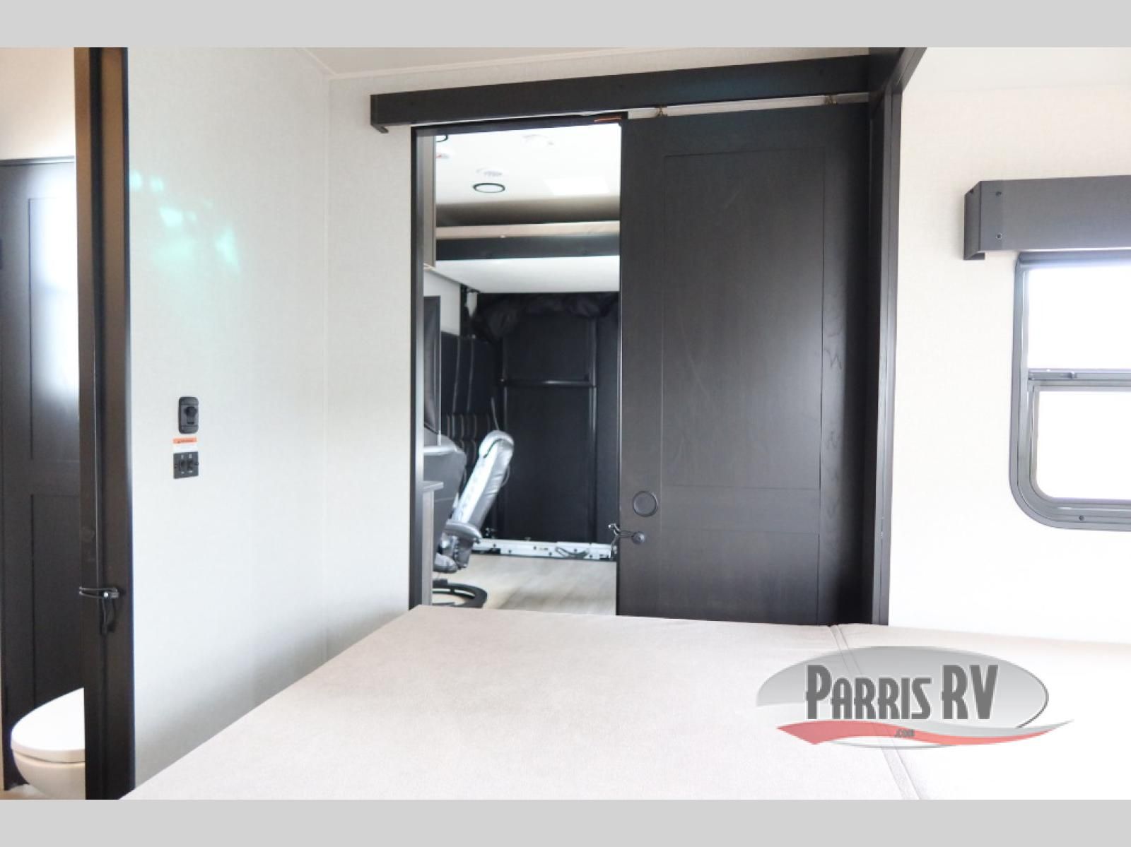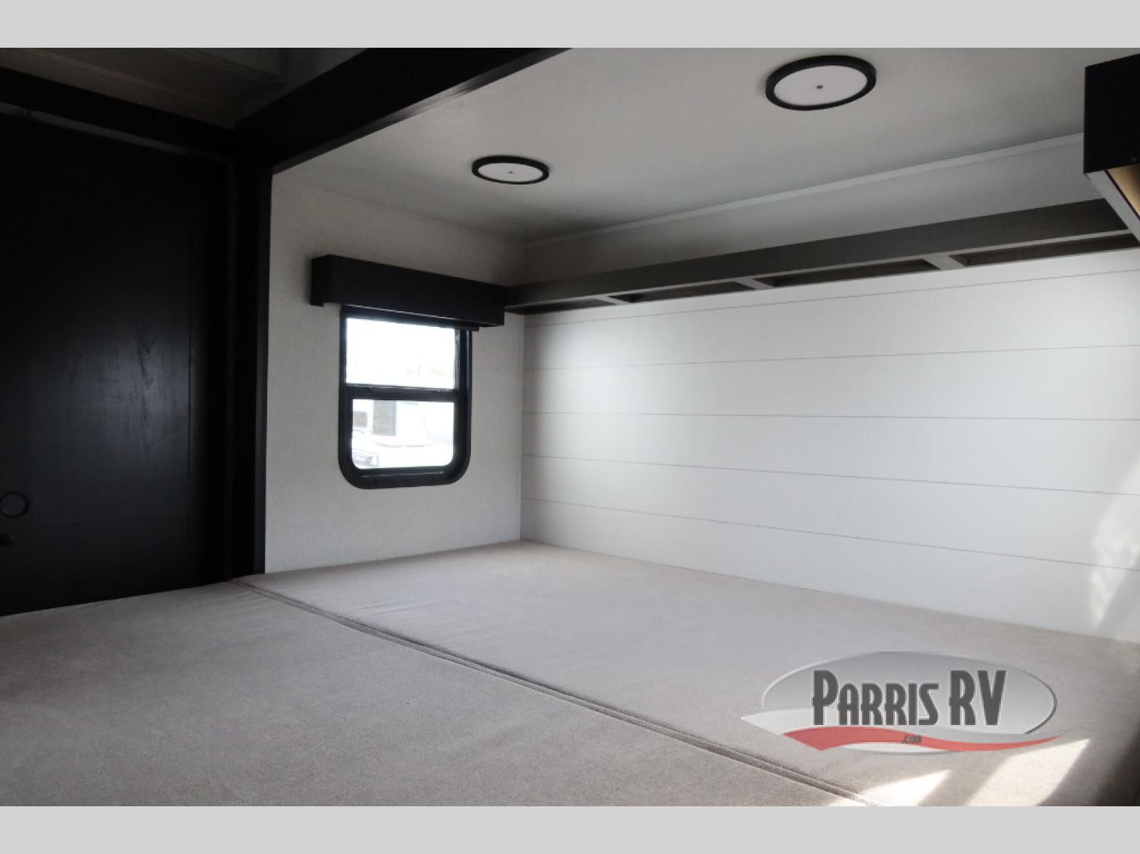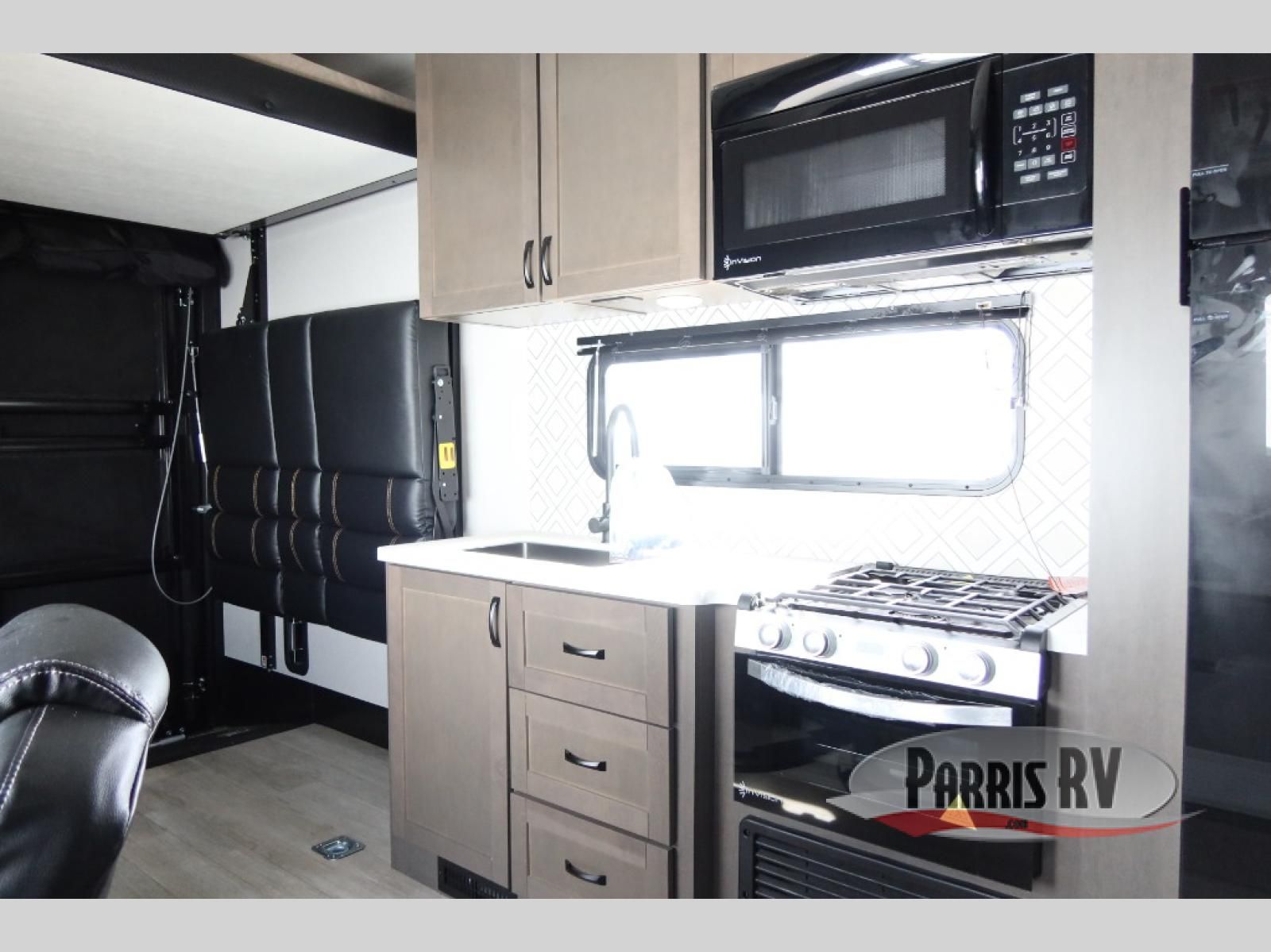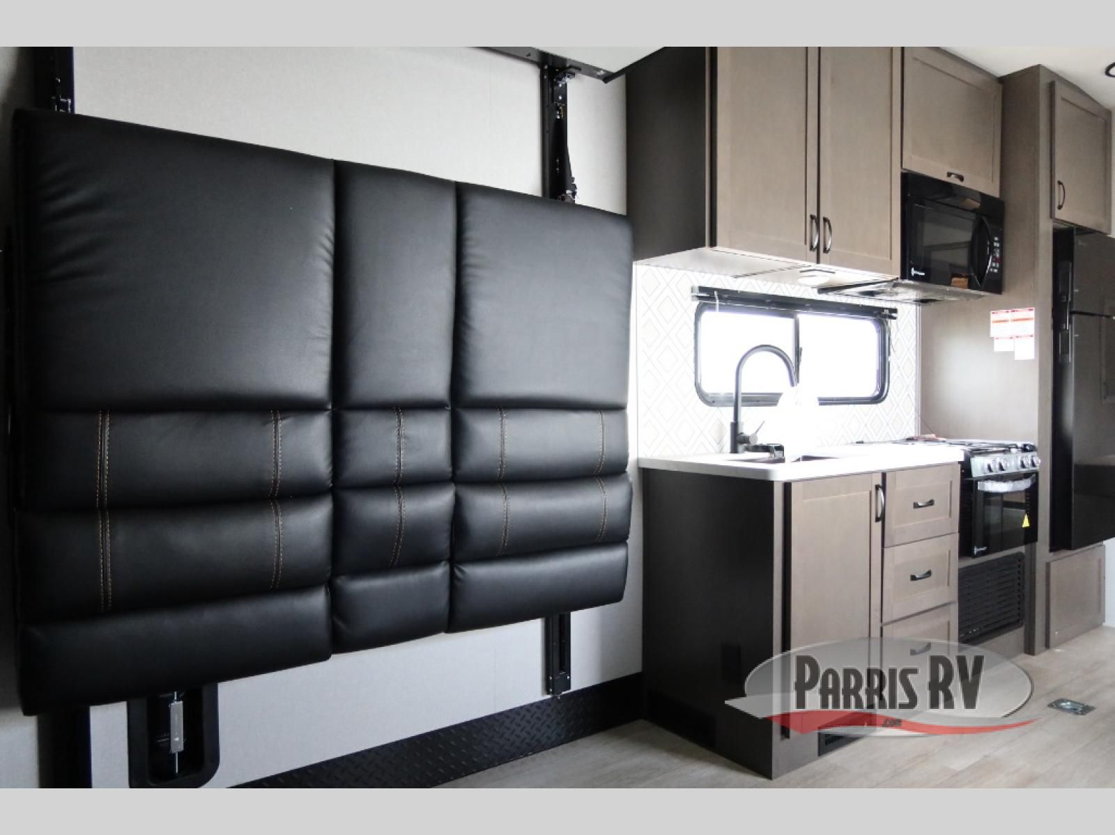 This toy hauler features 14' total garage space when you utilize the space all the way up to the master bedroom. The front is also shared with the dual entry bath for added convenience, and you'll enjoy a king bed in the bedroom for added comfort. A three-burner cooktop and space-saver microwave will let you make meals each day, and a 12V refrigerator will keep your cold items fresh. The Euro chairs and dual sofas provide comfy seating spaces, and the drop-down electric queen bed gives your guests a place to sleep.