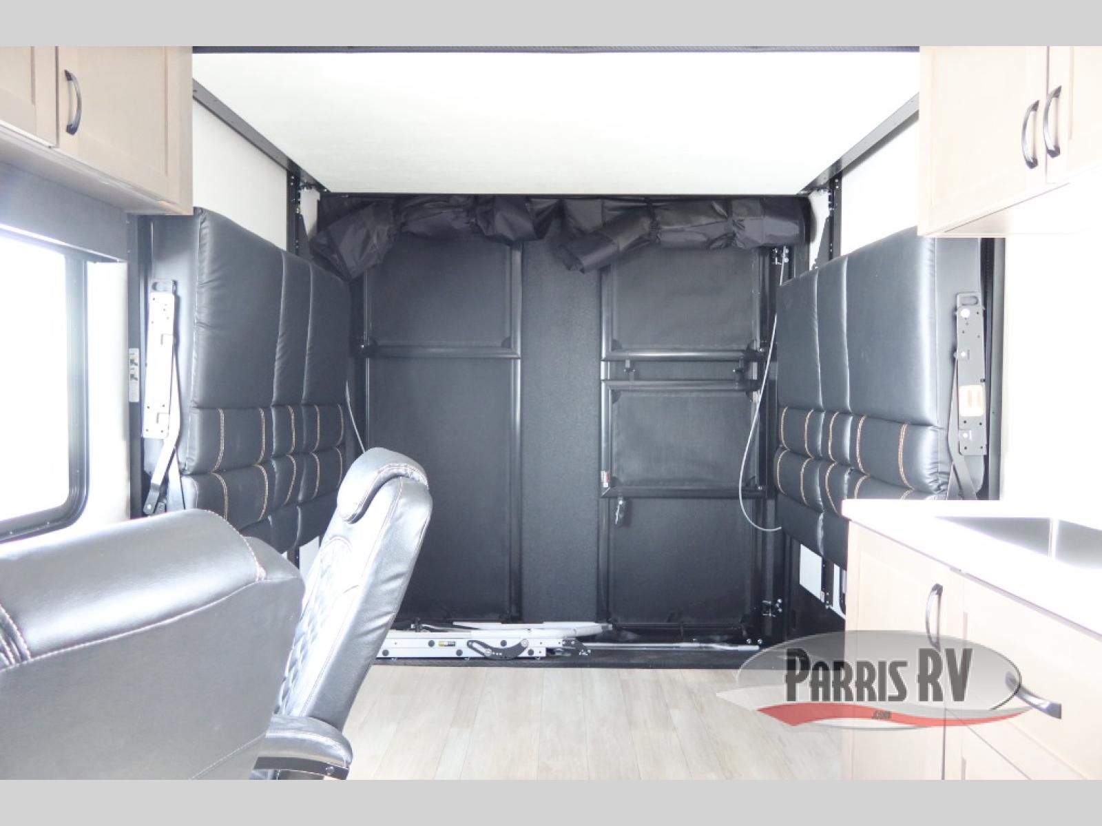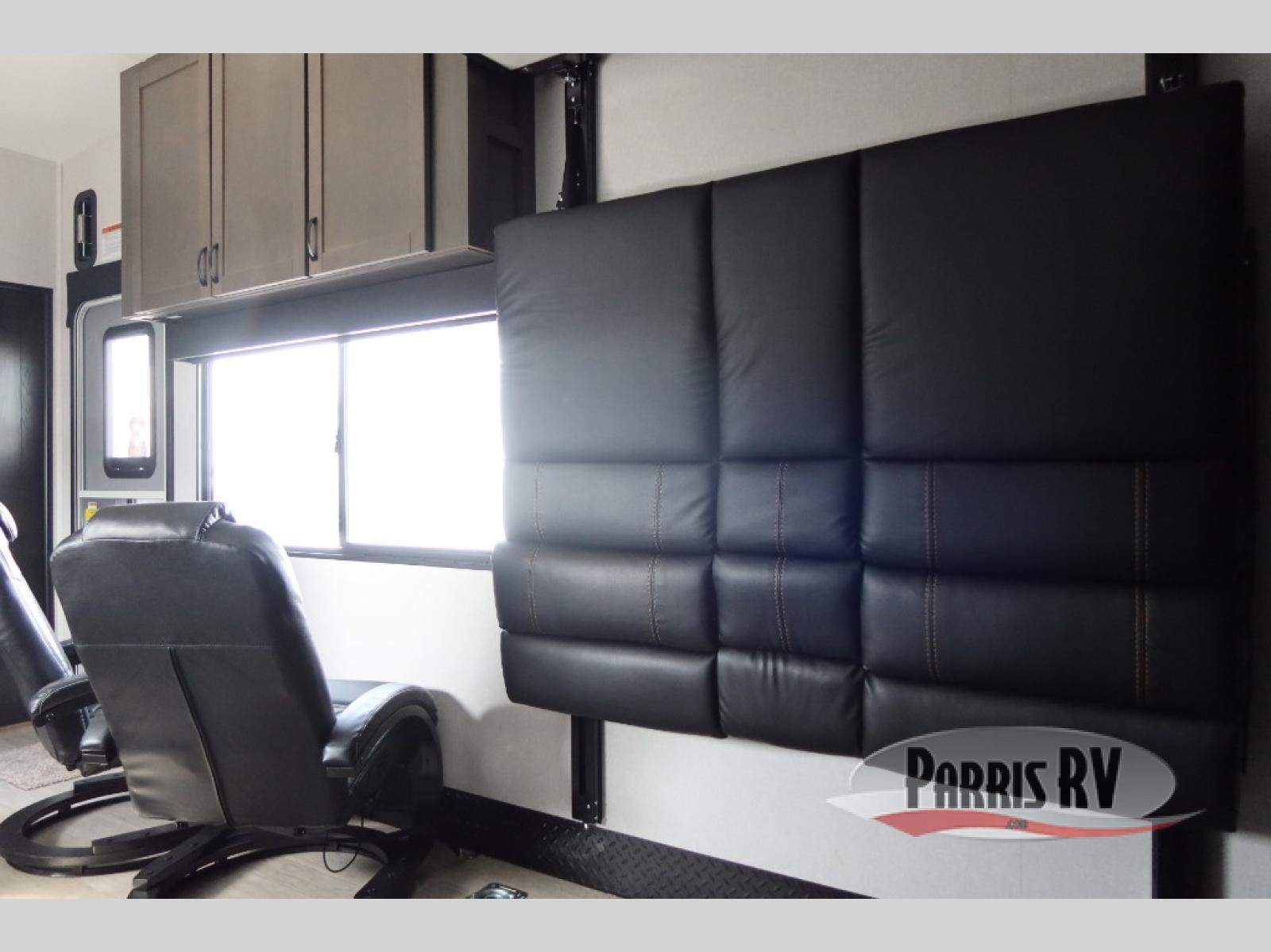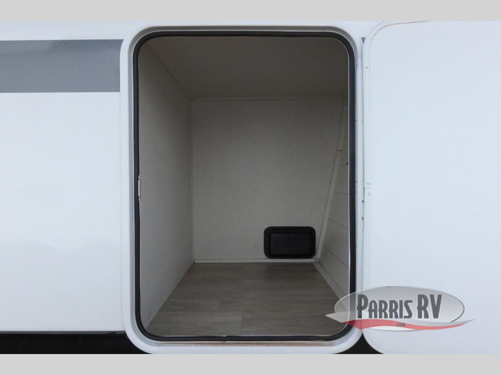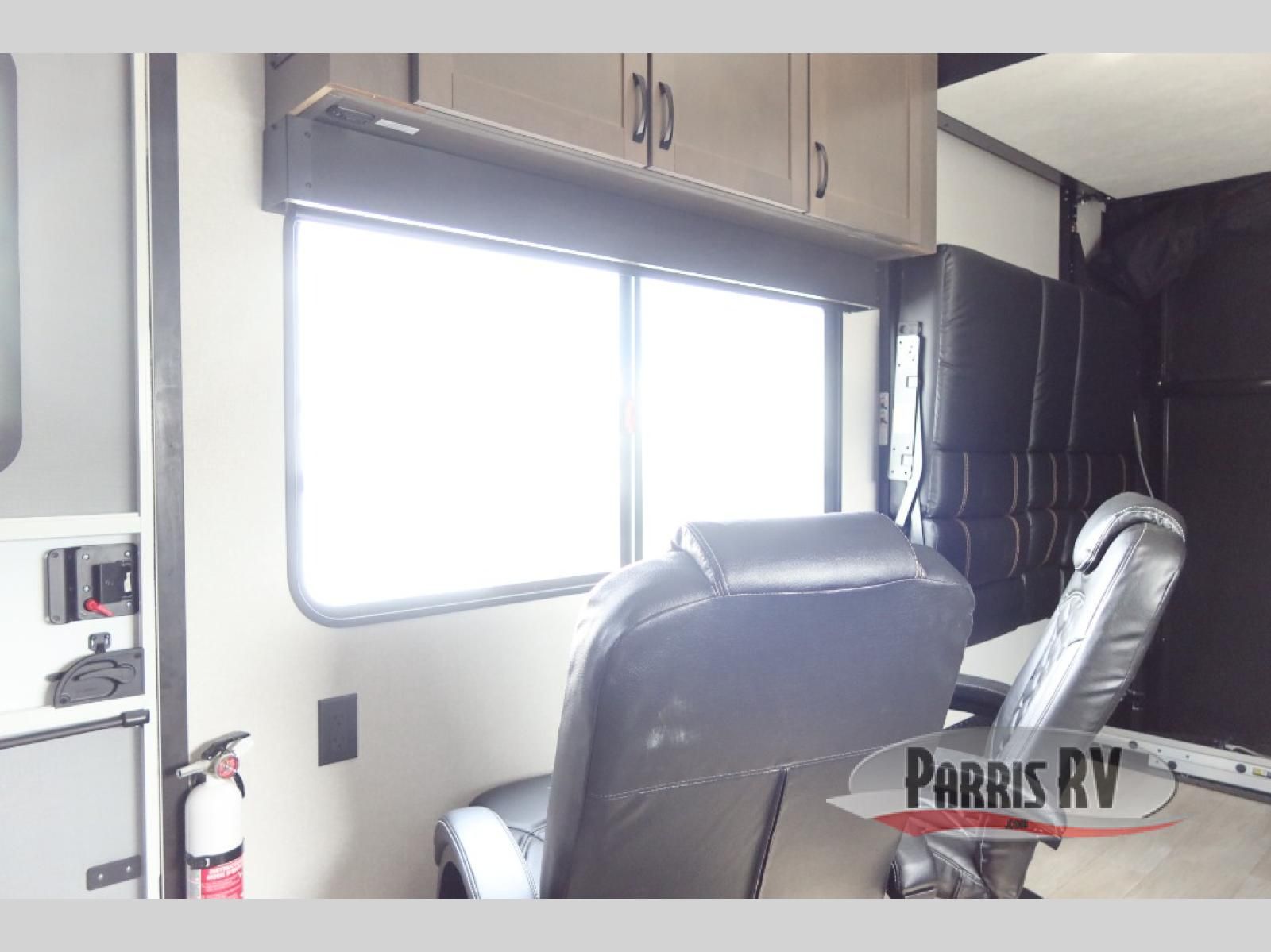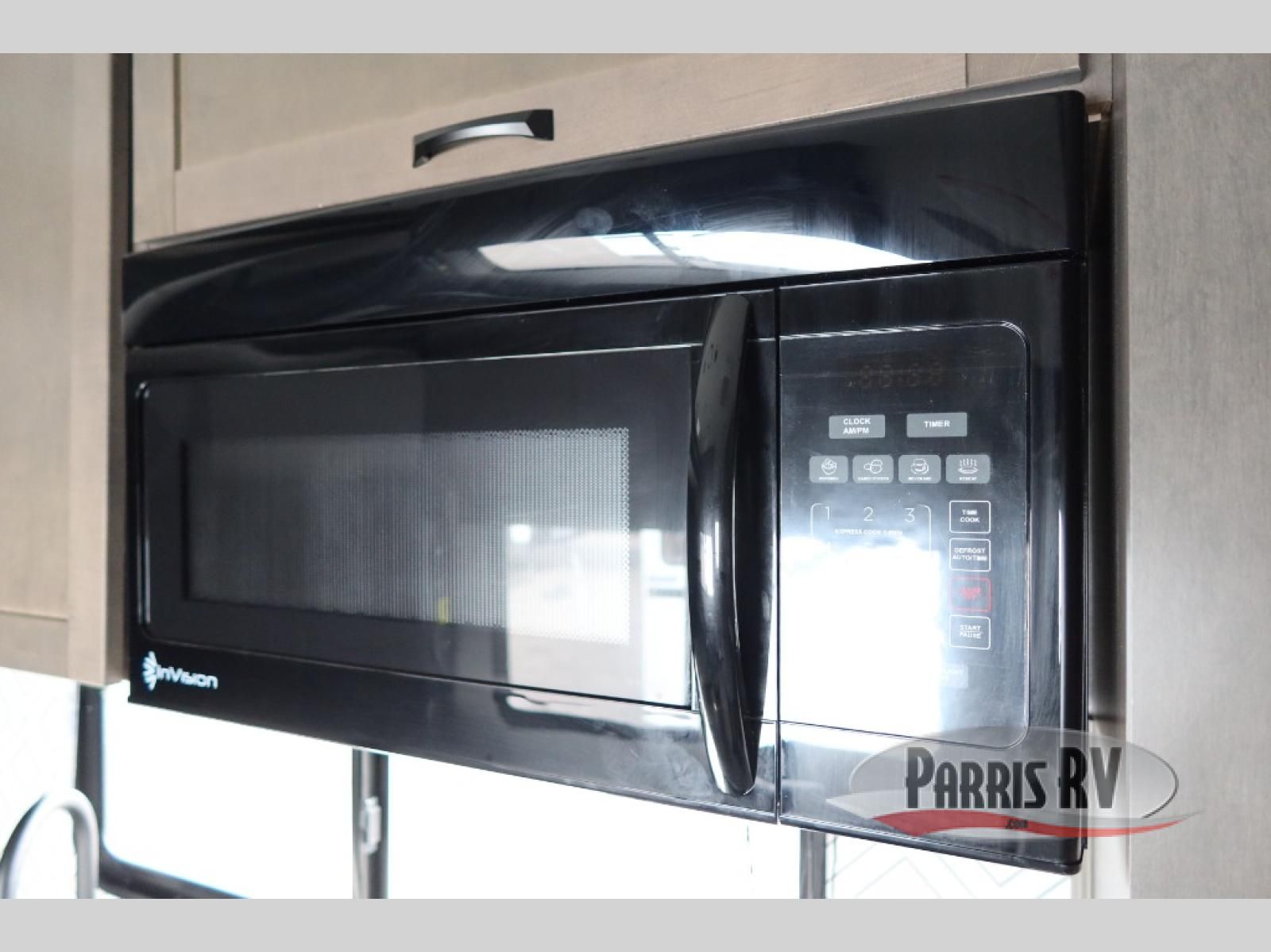 This toy hauler features 14' total garage space when you utilize the space all the way up to the master bedroom. The front is also shared with the dual entry bath for added convenience, and you'll enjoy a king bed in the bedroom for added comfort. A three-burner cooktop and space-saver microwave will let you make meals each day, and a 12V refrigerator will keep your cold items fresh. The Euro chairs and dual sofas provide comfy seating spaces, and the drop-down electric queen bed gives your guests a place to sleep.
