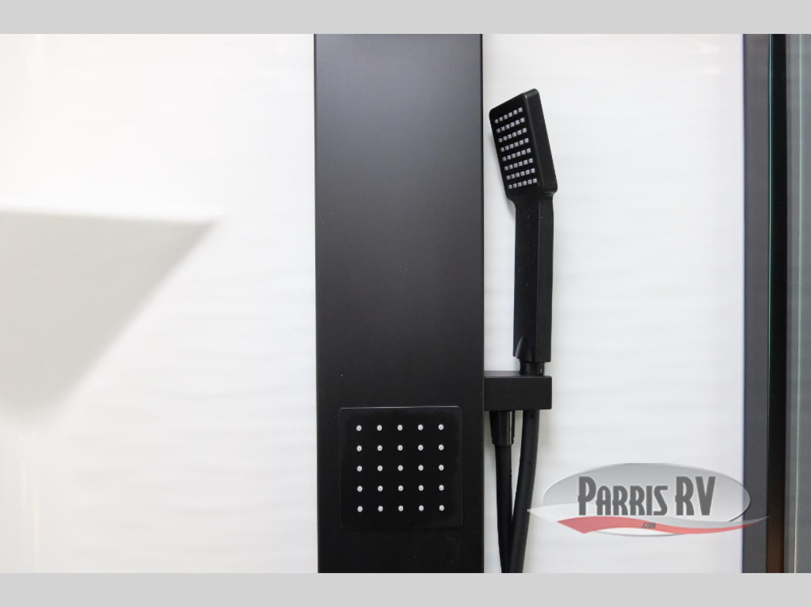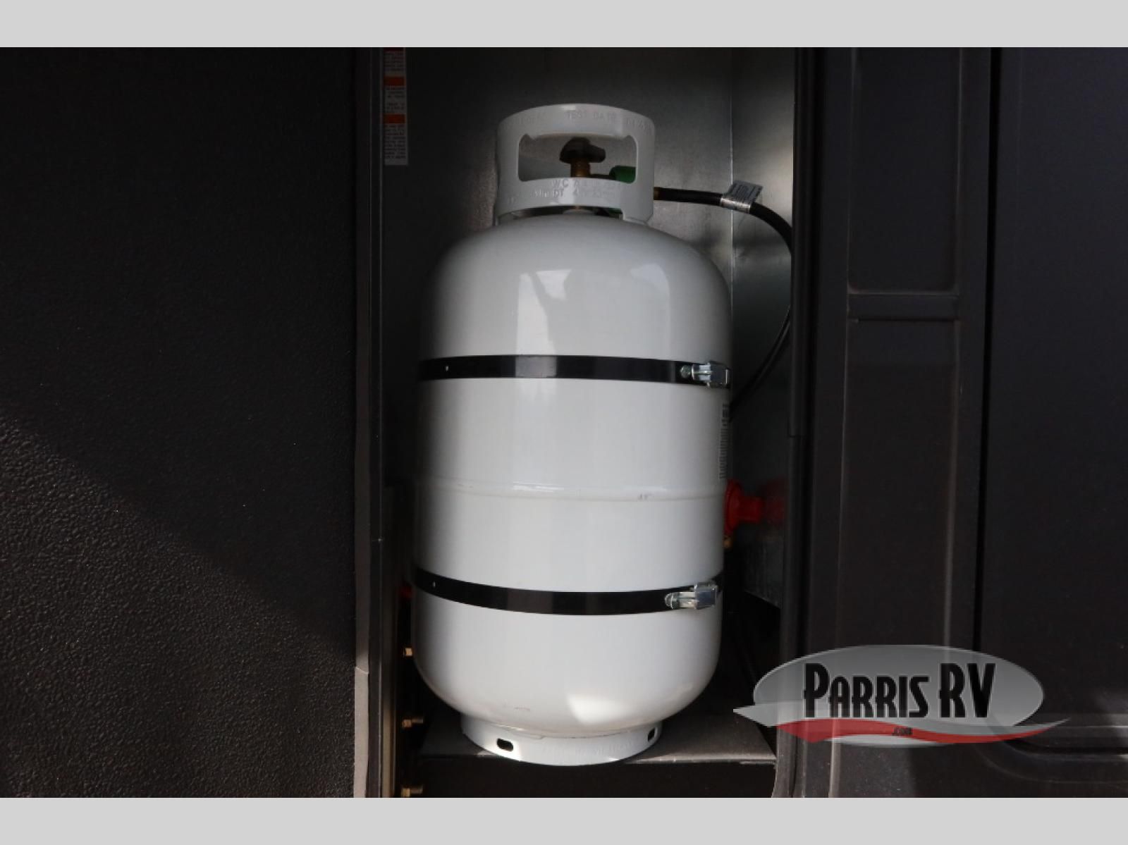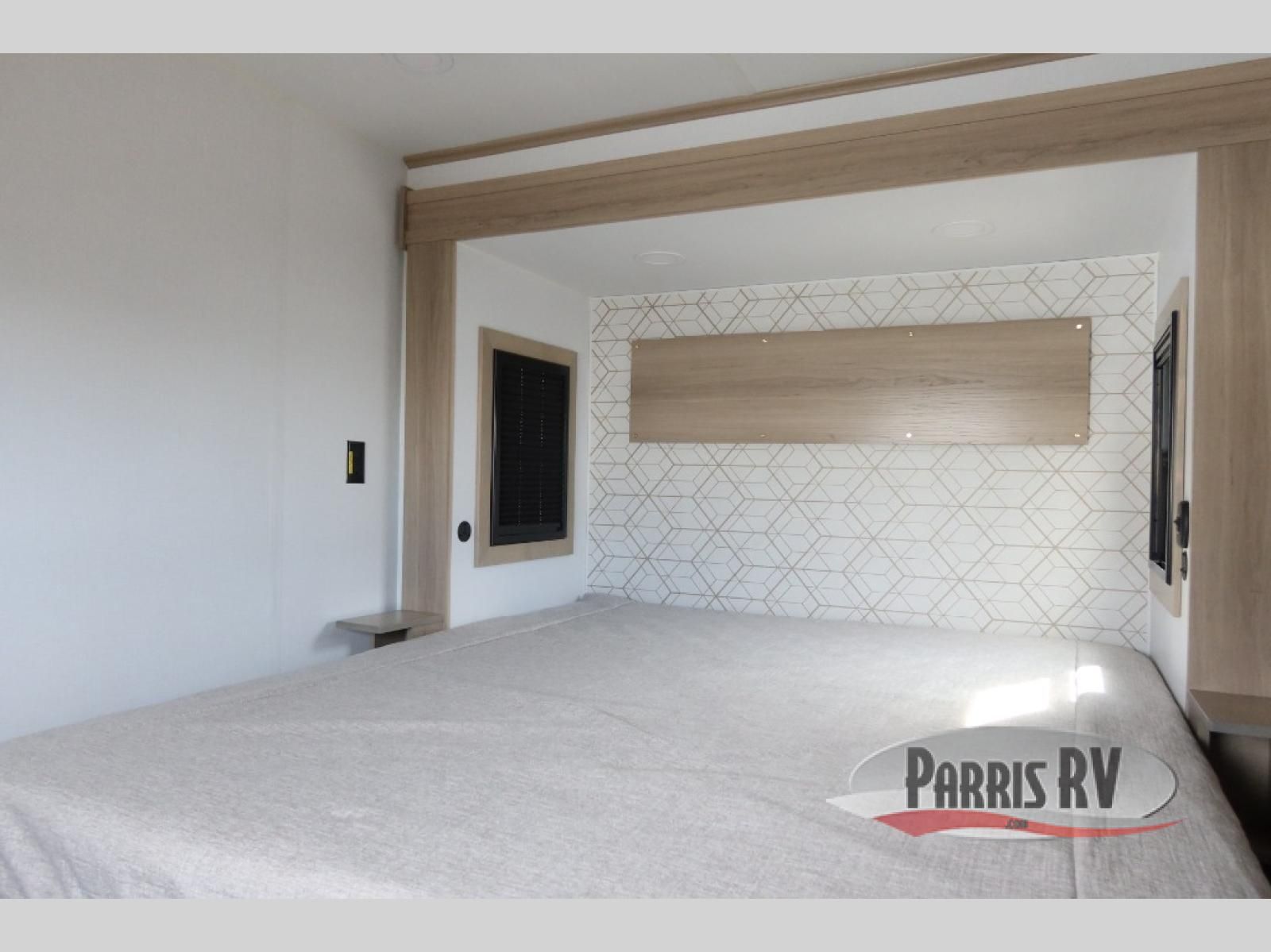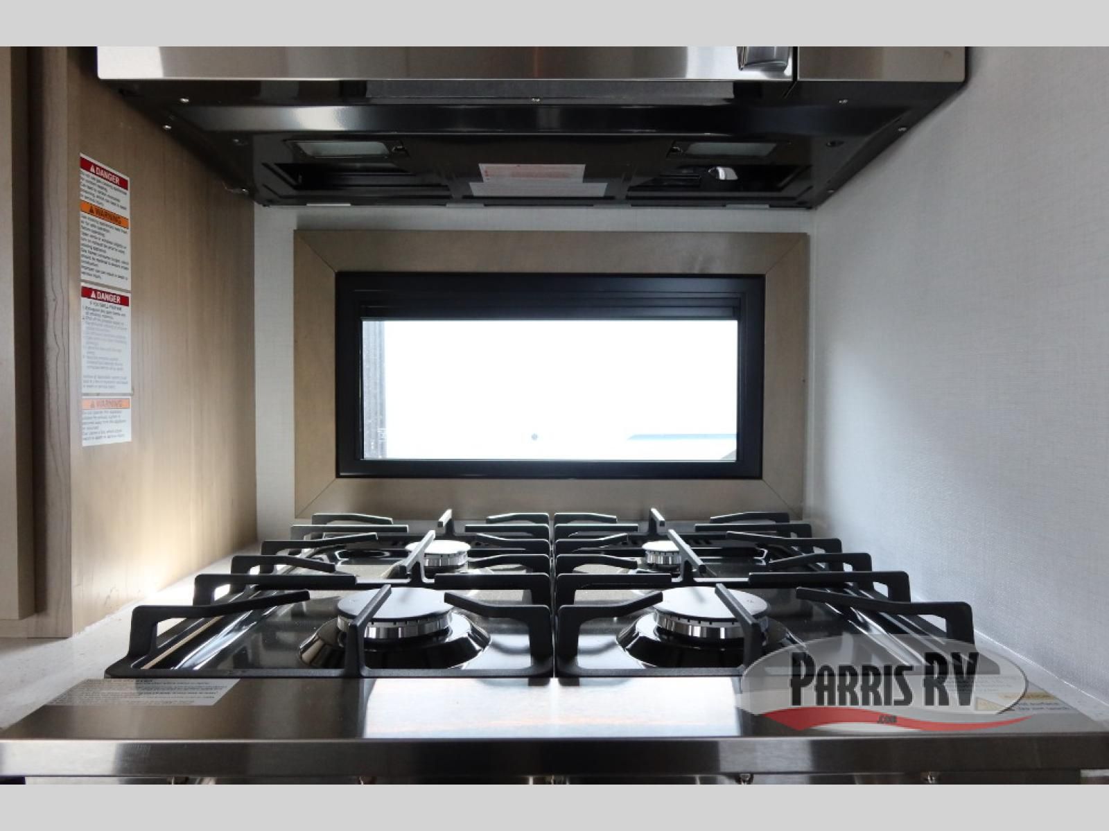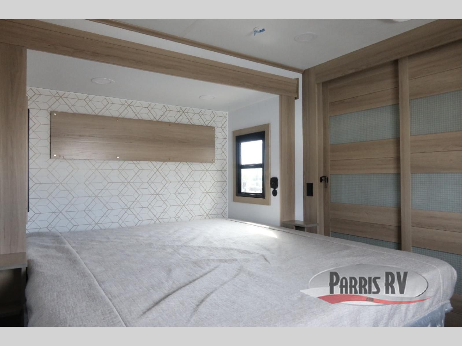 The whole family will love camping in this fifth wheel toy hauler! The front private bedroom has a king bed slide for more interior space, a Smart LED TV, a front large wardrobe, plus washer and dryer prep. Freshen up each morning in the full bathroom with the fiberglass one-piece shower then head to the kitchen to fry up some eggs on the four-burner range and bake some cinnamon rolls in the 24" stainless steel oven. Grab a cold cup of orange juice from the 20-cu. ft. 12-volt refrigerator and enjoy it along with the eggs at the dinette table or in the 15' garage on one of the dual opposing sofas with cupholders. The L-shaped hide-a-bed sofa is conveniently across from the entertainment center with a 50" Smart LED TV and fireplace. As you head into the 15' garage area, you will notice a loft with a twin bed, a queen bed above the opposing sofas, Adjust-A-Track frame welded tie downs, and one of the dual entry doors to the unit!