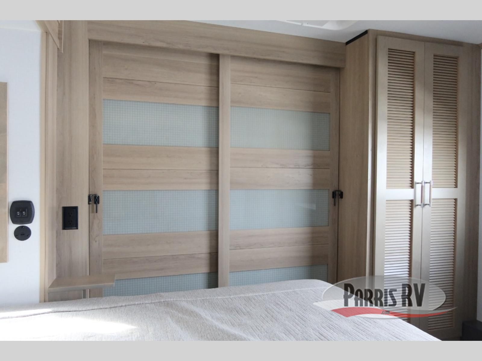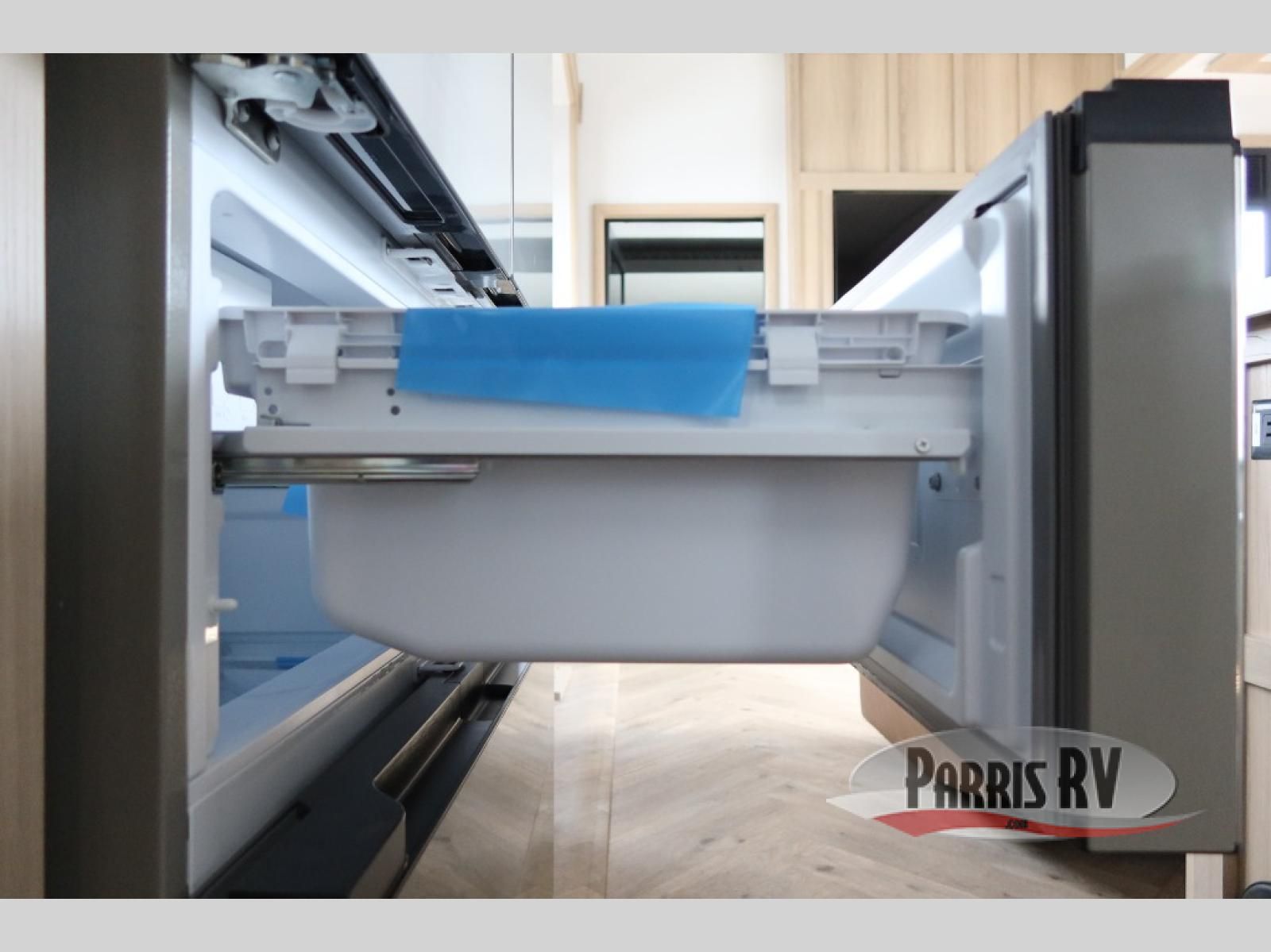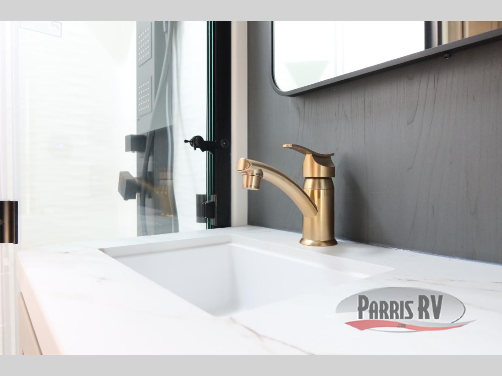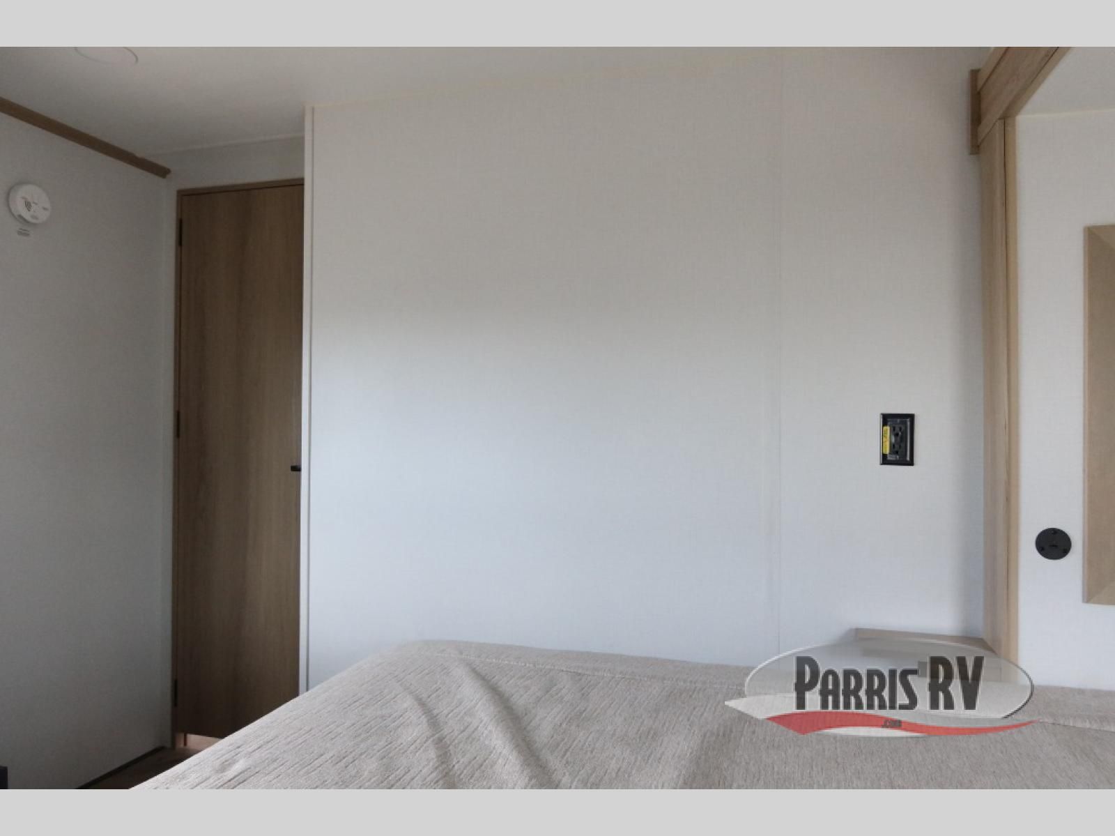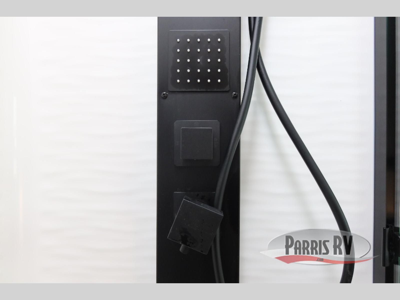 The whole family will love camping in this fifth wheel toy hauler! The front private bedroom has a king bed slide for more interior space, a Smart LED TV, a front large wardrobe, plus washer and dryer prep. Freshen up each morning in the full bathroom with the fiberglass one-piece shower then head to the kitchen to fry up some eggs on the four-burner range and bake some cinnamon rolls in the 24" stainless steel oven. Grab a cold cup of orange juice from the 20-cu. ft. 12-volt refrigerator and enjoy it along with the eggs at the dinette table or in the 15' garage on one of the dual opposing sofas with cupholders. The L-shaped hide-a-bed sofa is conveniently across from the entertainment center with a 50" Smart LED TV and fireplace. As you head into the 15' garage area, you will notice a loft with a twin bed, a queen bed above the opposing sofas, Adjust-A-Track frame welded tie downs, and one of the dual entry doors to the unit!