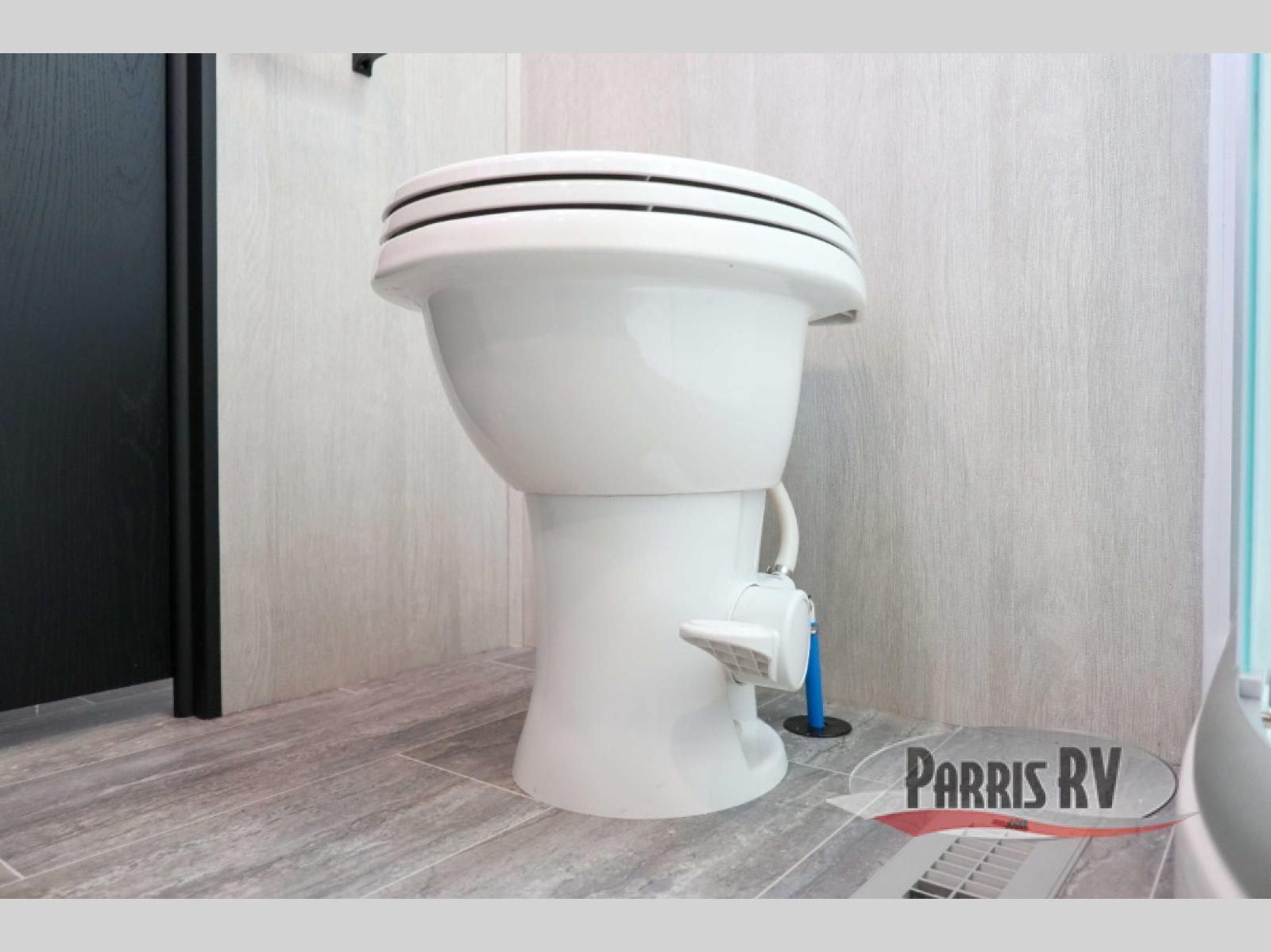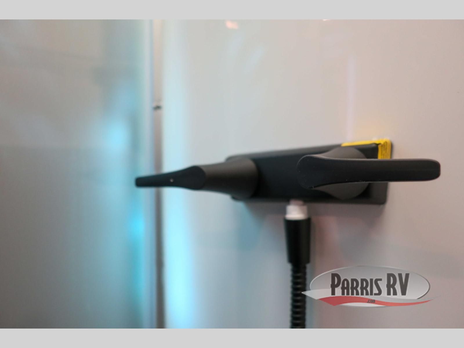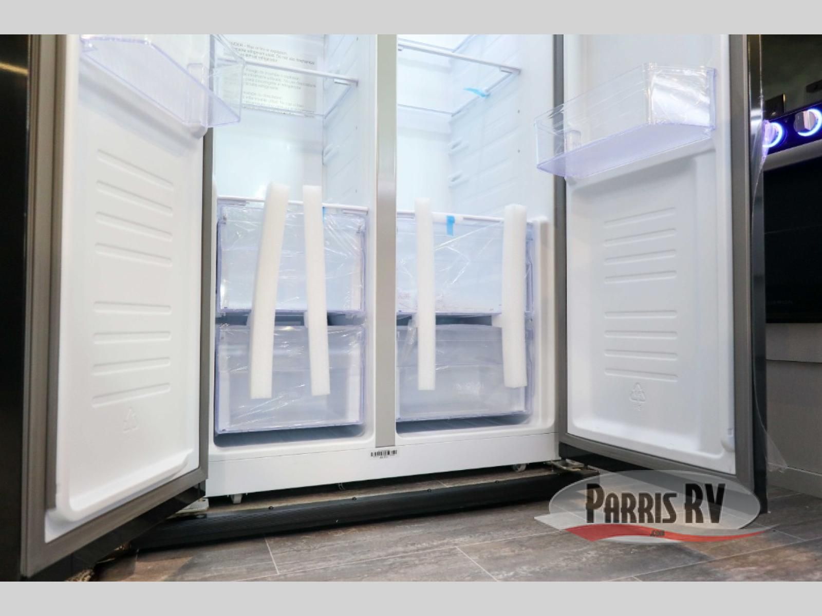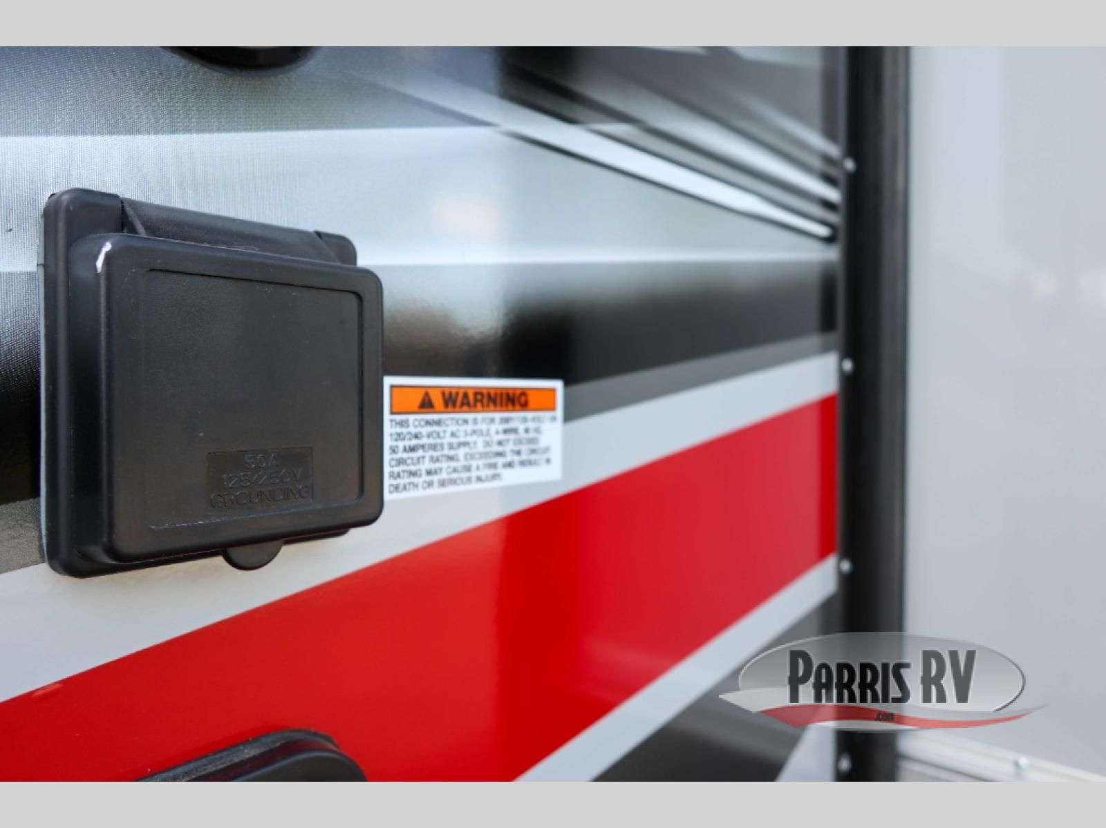 If you want to get away for the weekend with your toys, get away with this Vortex toy hauler. It has a 16' 4" garage to keep your ATVs and dirt bikes secure while you travel. You can accommodate a group of six for sleeping with the king-size bed, power queen bunk and sofas, and everyone will benefit from a hot meal prepared on the three-burner range in the kitchen. You can even keep your cold items fresh by storing them in the refrigerator. The dual-entry bathroom has a door within the main hallway, but it also has a private entrance that leads into the bedroom.