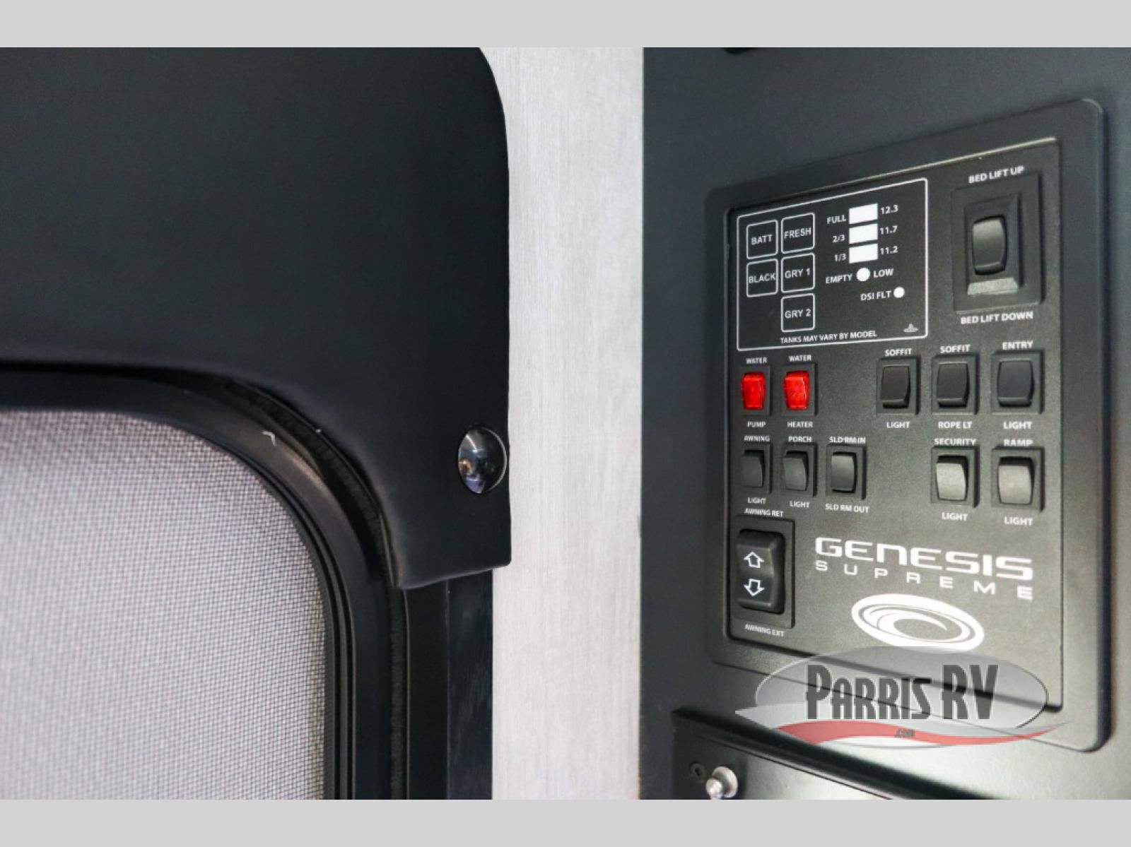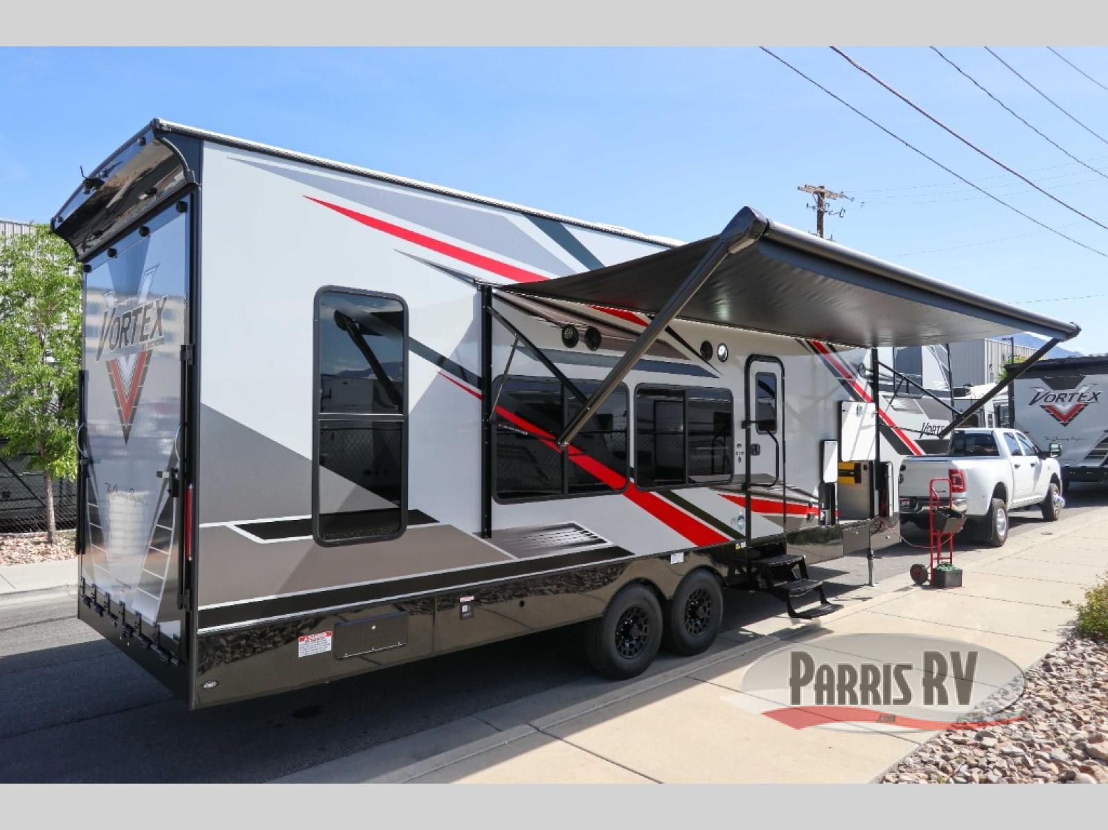Your camping life is going to be a blast with the Genesis Supreme Vortex toy hauler! The innovative floorplans provide you with everything you need for memorable trips. These models can withstand the extreme heat of the desert, while still keeping you comfortable inside. There are kitchen and bath amenities inside, along with ample storage space for your belongings. With a wide variety of floorplans to choose from, you're sure to find the Vortex that fits your needs best!