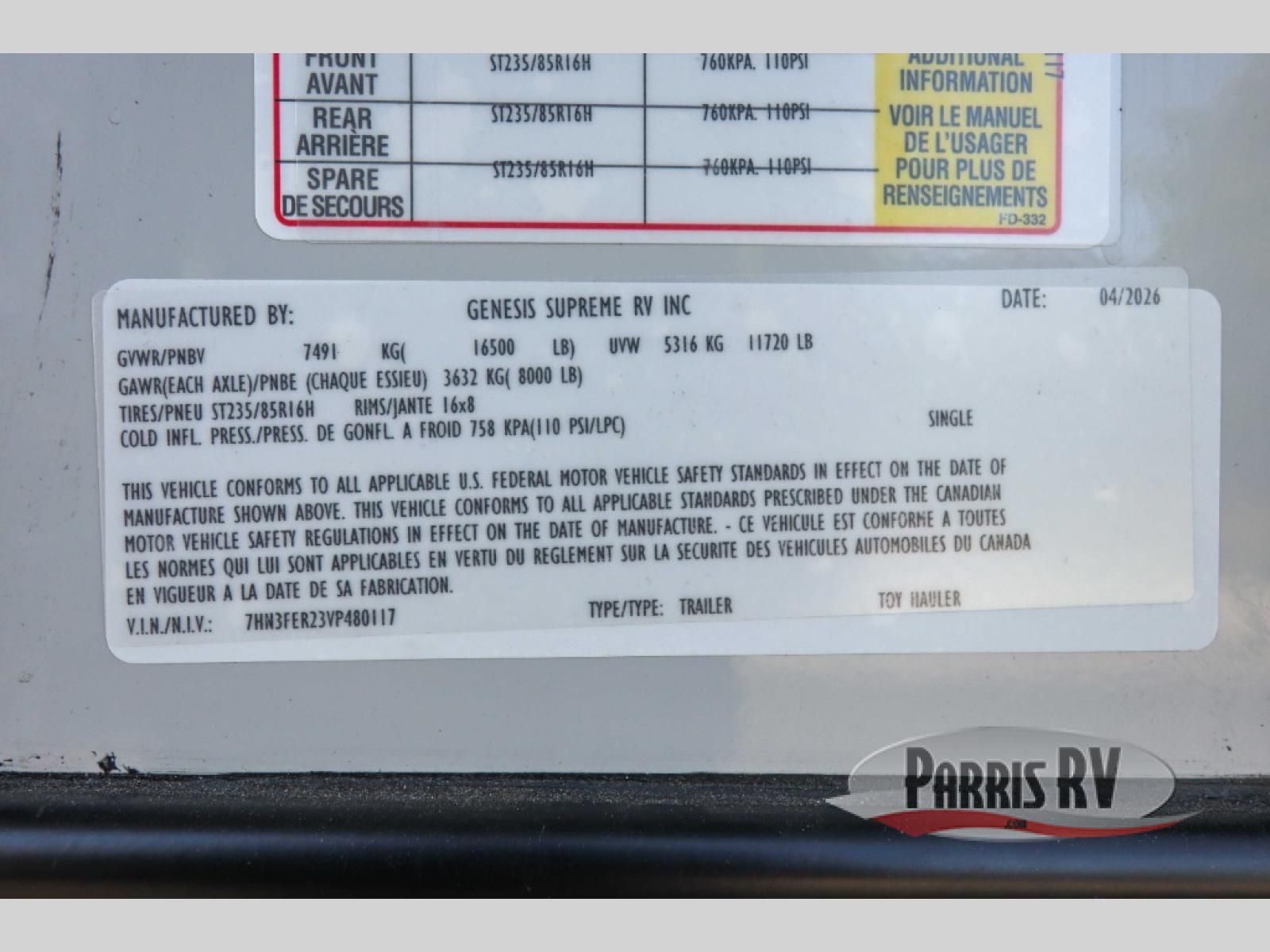 Genesis Supreme Vortex toy hauler 3016IKS highlights: