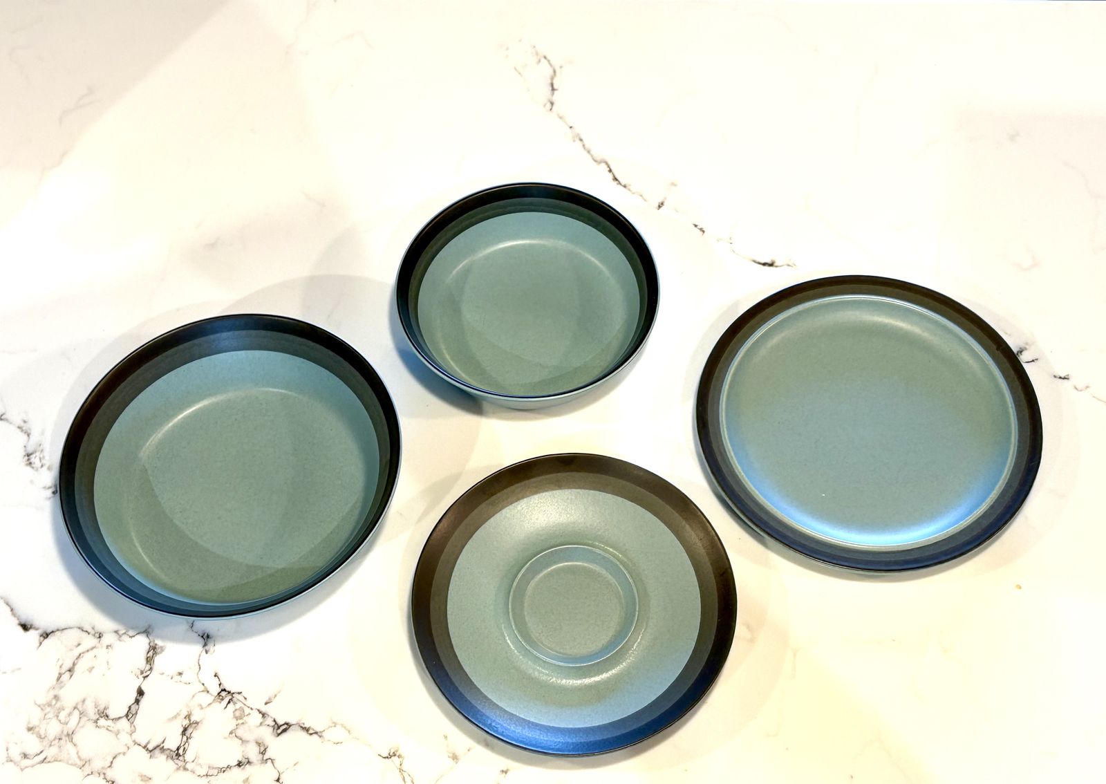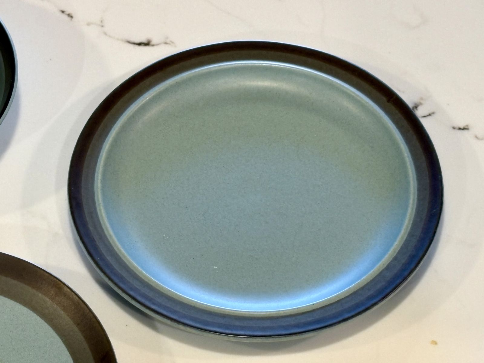 VenmoVintage Arrowstone Navajo Blue stoneware plates bowl mid century. Made in Japan.
