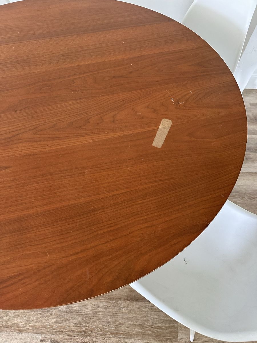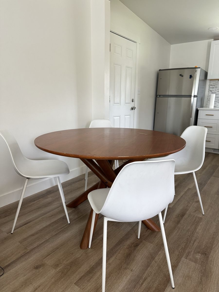 VenmoSolid wood table with unique legs and modern chairs