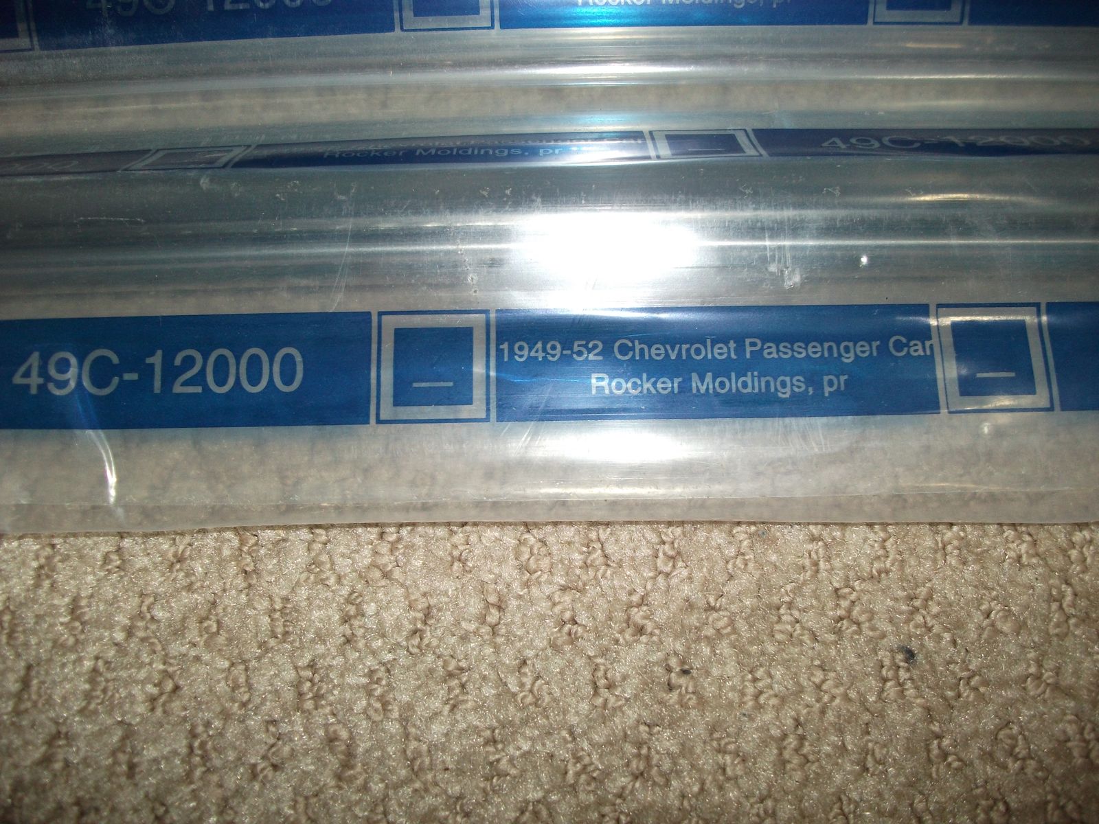 New in package, pair of 1949-1952 Chevy rocker moldings with mounting clips (right & left side). High quality reproductions: Packages are unopened. $200.00 or best offer. Sorry, I do not accept text messages, phone calls only please. 801-255-7192