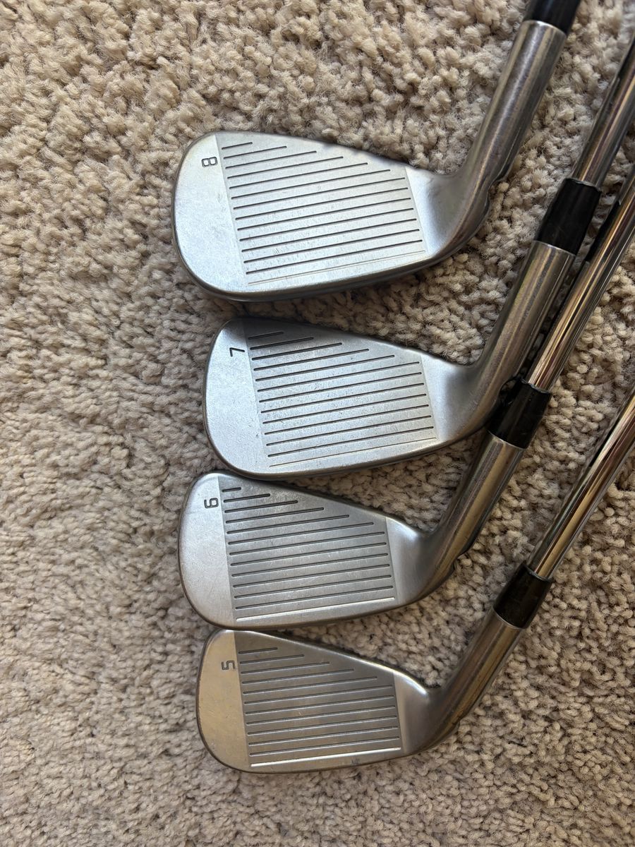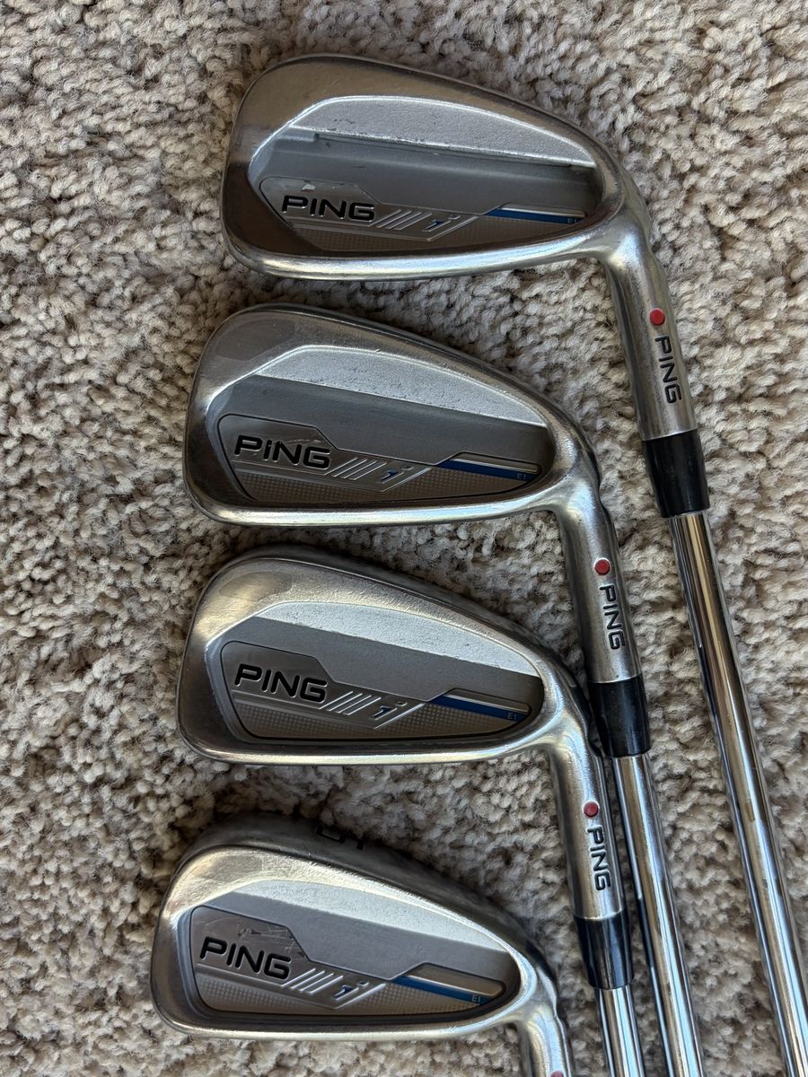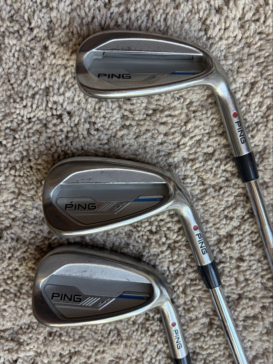 VenmoUsed ping I E1 irons in very good shape, set includes 5 thru gap wedge, shafts are NS Pro Modus tour 105 steel with stiff flex, 6 iron measures 38 inches, golf pride standard grips