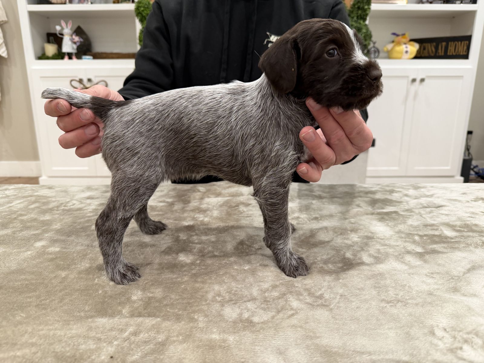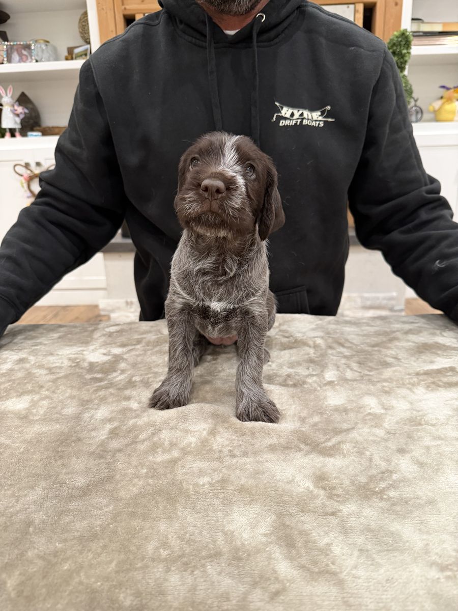CashAppI have a wonderful litter of Wirehaired Pointing Griffon puppies, with one Female Puppy Available. They were whelped on 3/9/2026 and can start going to their new homes on May 5th. The Sire is Hunn Hill Magnum (Coop), is a fantastic dog. He is out of George Decasta’s Dog CK. He absolutely loves to retrieve on land and in the water. He has a nice point and is a natural tracker. He is a good-sized dog at about 60 lbs. He has a dense coat with a medium harshness. The Dam, Western Sky, is out of VC Flatbrooks Walker and is a sweetheart of a dog that loves attention. She also loves to retrieve and is super birdie. She has a beautiful coat with nice furnishings. She is a taller dog with and weighs in around 64 pounds. These puppies will come with AKC Registration. The puppies have had their tails docked and dewclaws removed. They will have 3 series of dewormer, 2 vaccinations, and will get microchipped. The total price is $2000 and we do a $500 deposit.