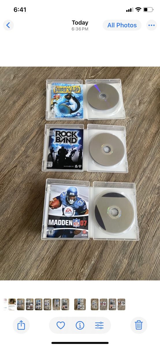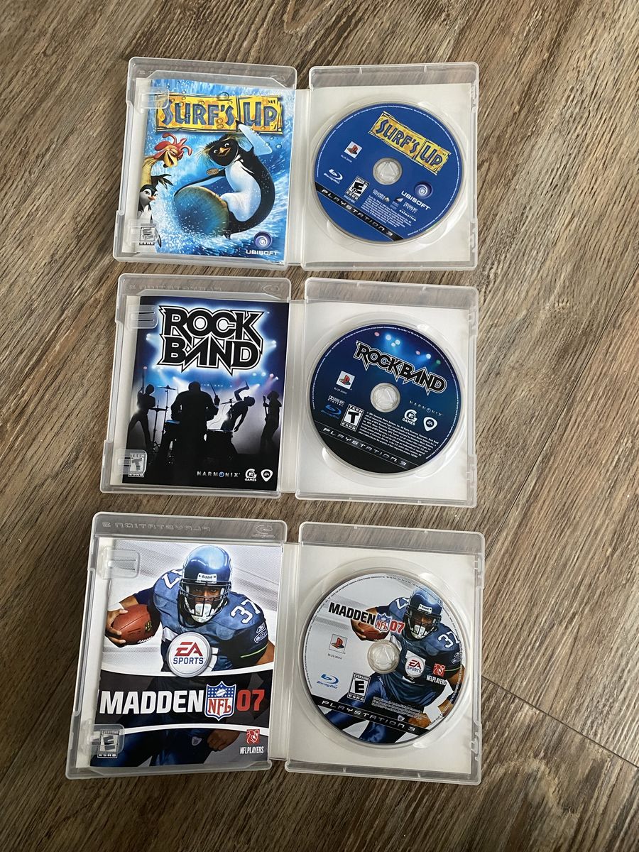 Surf's Up, Rock Band, Madden NFL 07, Tiger Woods PGA Tour 10, Tiger Woods PGA Tour 07, NBA 2K7, Blazing Angels Squadrons of WWIl, Socom Confrontation US Navy Seals, Rainbow Six Vegas Tom Clancy's, Guitar Hero Aerosmith
