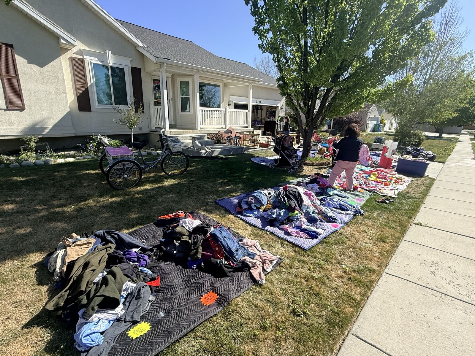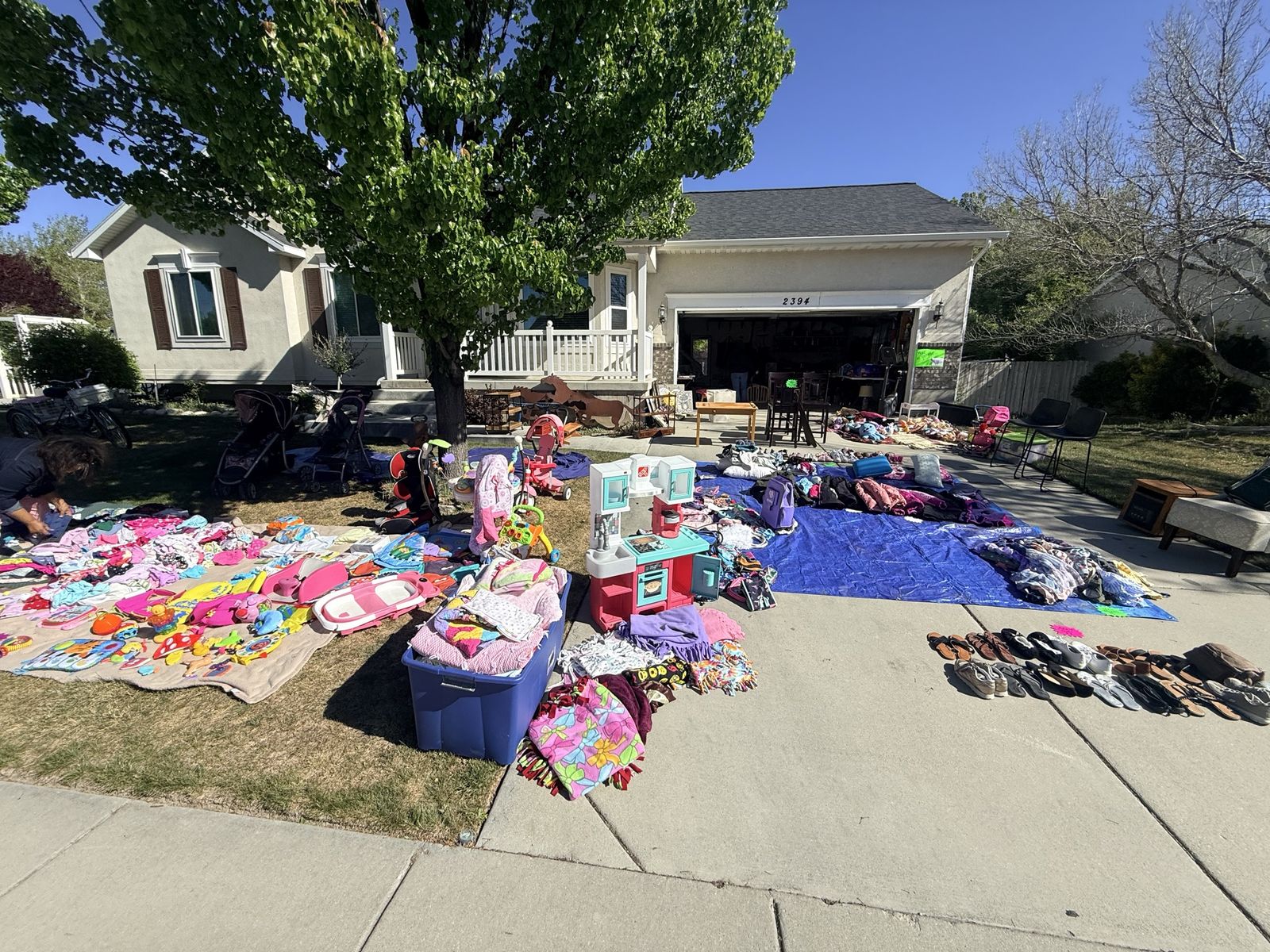 LOTS of baby and girls clothes and shoes in great condition. Booster Seat. Tons of toys/ stuffed animals etc. Electronic Basketball Game. Home goods. Collectibles/ antiques. Furniture. Window AC. Table/ chairs. Barstools. Large solid wood TV console/hutch. Exercise bike. Adult Trike. Roomba. Printer. Lamps. 4Runner radio. Planters. Crafts. Lots of miscellaneous items.